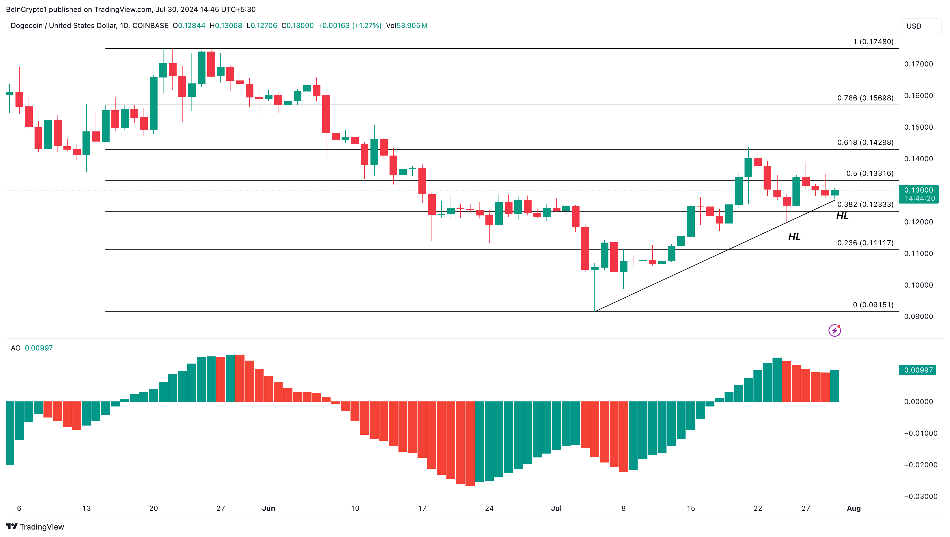 في وقت النشر، يتم تداول DOGE بسعر 0,13$ وهي في طريقها لإنهاء الشهر بأول عائد إيجابي منذ مايو. علاوة على ذلك، تكشف تشكيلة القيعان المرتفعة (HL) على الرسم البياني اليومي (HL) أن فرص دوجكوين في التداول بسعر أعلى تزداد مع اقتراب شهر جديد.