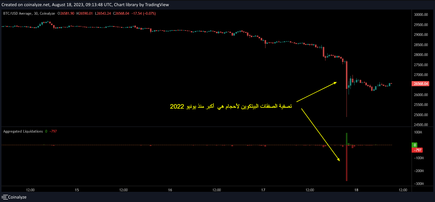 جزء كبيرة من التحركات في سوق العملات المشفرة. كانت مدفوعة بشكل كبير بعمليات تصفية صفقات التداول في مختلف بورصات تداول العملات الرقمية.