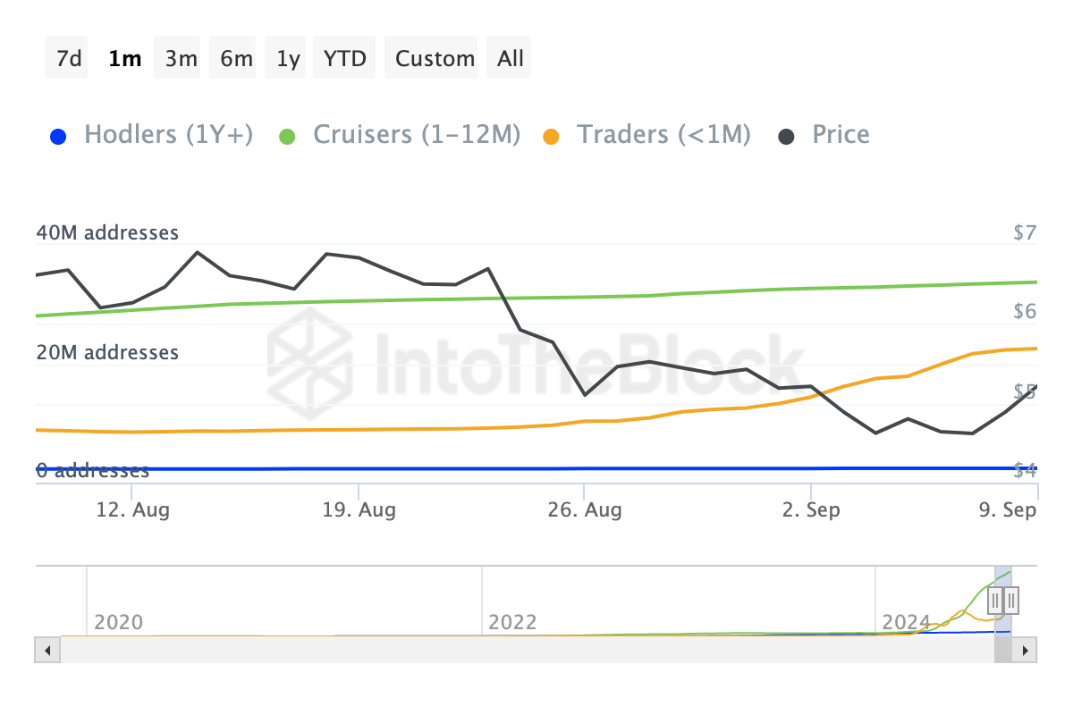 على الرغم من الاتجاهات الهبوطية، تكشف النتائج من IntoTheBlock أن العديد من العناوين التي اشترت تونكوين (TON) في آخر 30 يومًا لا تزال تحتفظ بالعملة المشفرة.