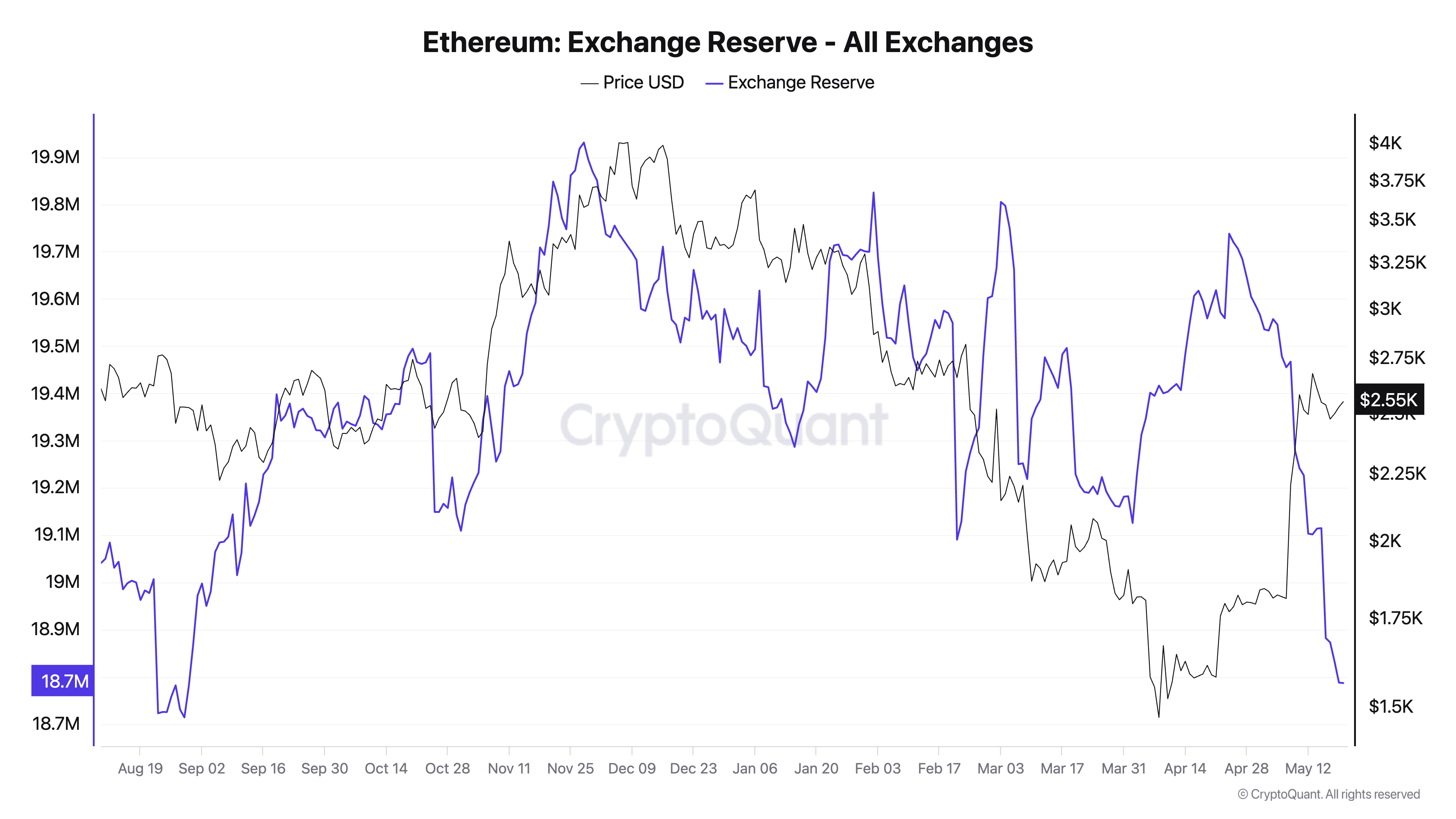 ومن الجدير بالذكر أن قرار الشركة بزيادة ممتلكاتها يأتي وسط تزايد الاهتمام بإيثريوم. حيث قام المتداولون بشراء ETH بشكل متزايد، مما أدى إلى انخفاض كبير في احتياطيات البورصات إلى أدنى مستوياتها في تسعة أشهر.