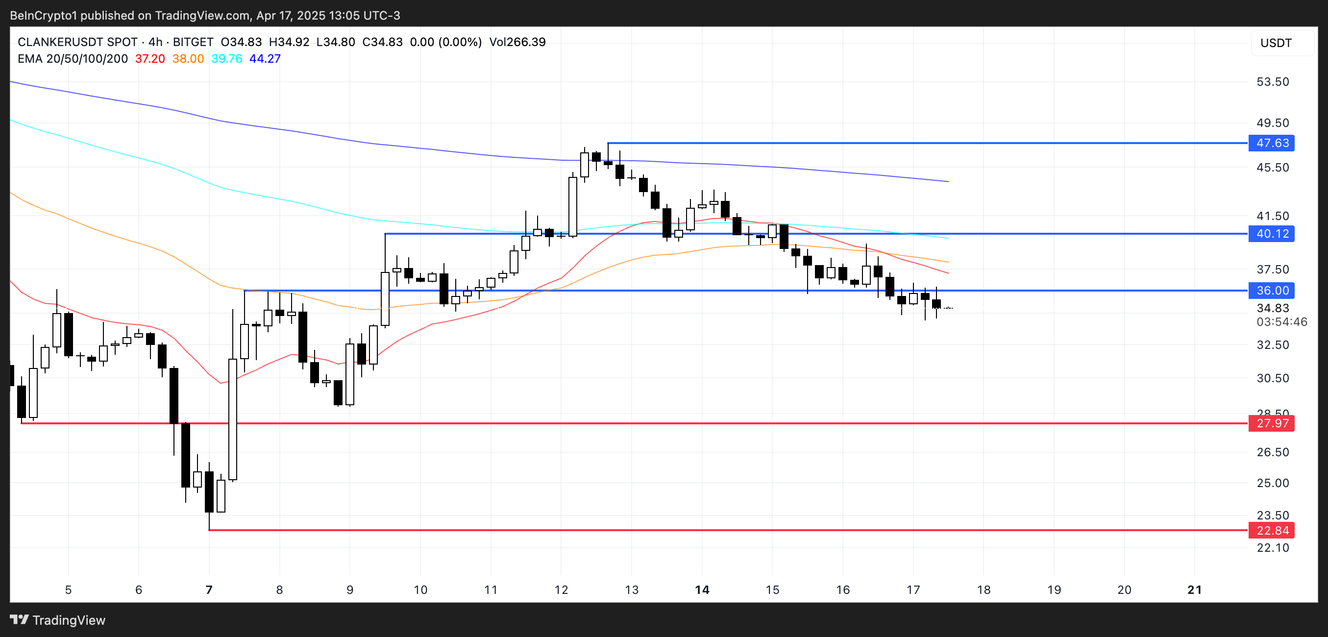 إذا تعمق الاتجاه الهبوطي الحالي لـ CLANKER، فقد يختبر الدعم عند $27,97 وربما ينخفض إلى $22,84، ليهبط تحت $25 لأول مرة منذ 6 أبريل.