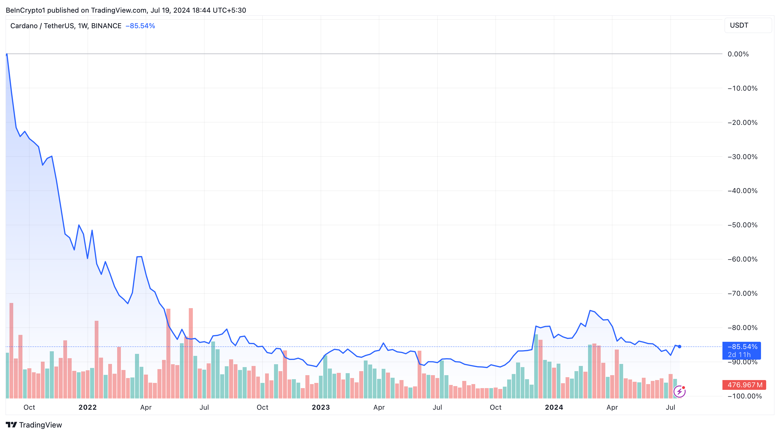 بالإضافة إلى ذلك، يلاحظ تراجع نشاط المطورين، والذي يعتقد أنه يساهم في تقليل أهميتها مقارنة بشبكات البلوكتشين الأخرى. ناهيك عن أن ADA منخفضة بنسبة 85% عن أعلى مستوياتها في عام 2021.