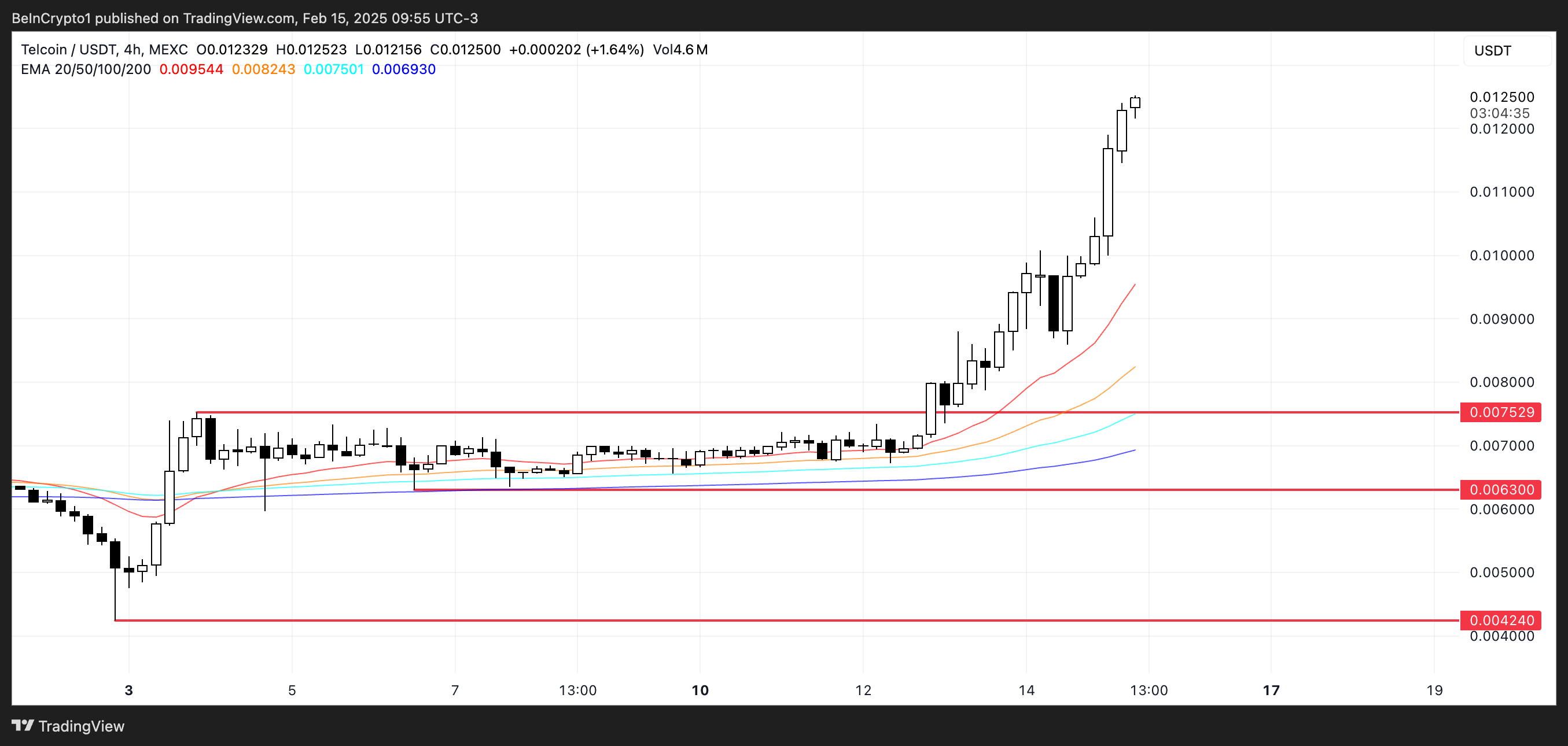 إذا استمر الزخم الصعودي، قد يختبر TEL قريبًا مستوى 0,013 دولار ويمتد ارتفاعه نحو 0,015 دولار. ومع ذلك، إذا انعكس الاتجاه، قد يتراجع TEL إلى 0,0075 دولار، مع إمكانية هبوط إضافية إلى 0,0063 دولار أو حتى 0,0042 دولار في حالة تراجع أقوى.