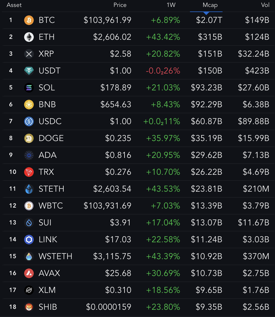 ارتفعت القيمة السوقية الإجمالية للعملات الرقمية البديلة خلال الأسبوع الماضي، من 1,07 تريليون دولار إلى 1,30 تريليون دولار - زيادة كبيرة تشير إلى تدفقات قوية إلى قطاع العملات الرقمية البديلة.