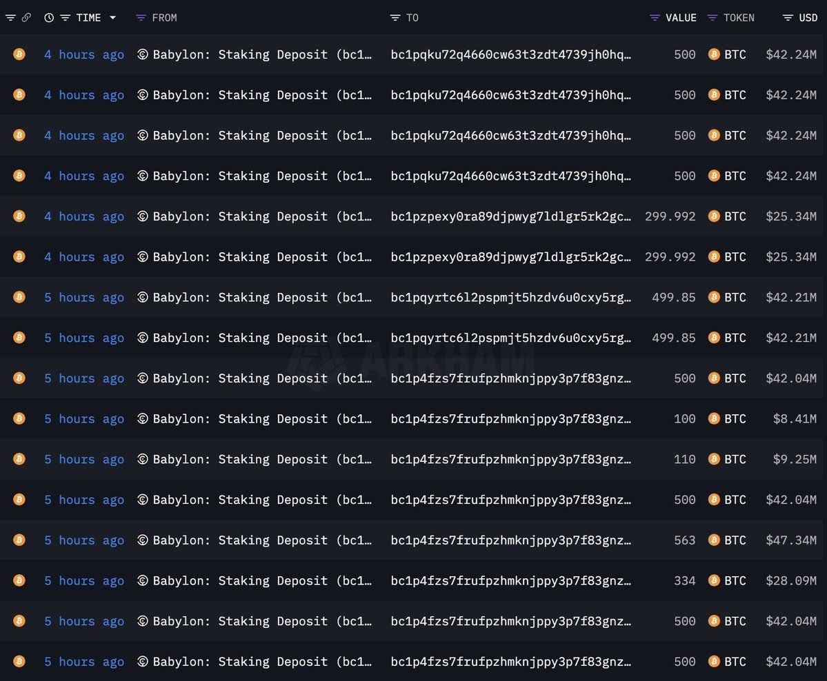 “قبل حوالي 5 ساعات، تم إلغاء ستاكينج 14,929 BTC (1,26 مليار دولار) من Babylon”، وفقًا لما ورد في المنشور.