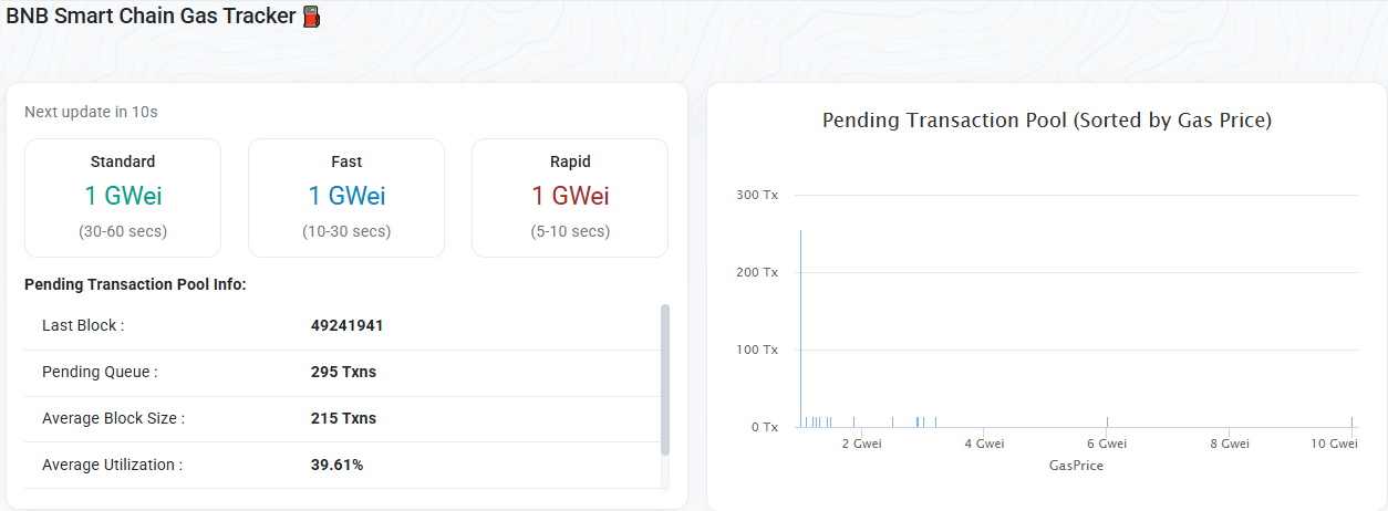 تُظهر البيانات على BscScan، مستكشف البلوكشين الذي يتتبع المعاملات على سلسلة BNB الذكية، رسوم الغاز عند 1 Gwei في وقت كتابة هذا التقرير.