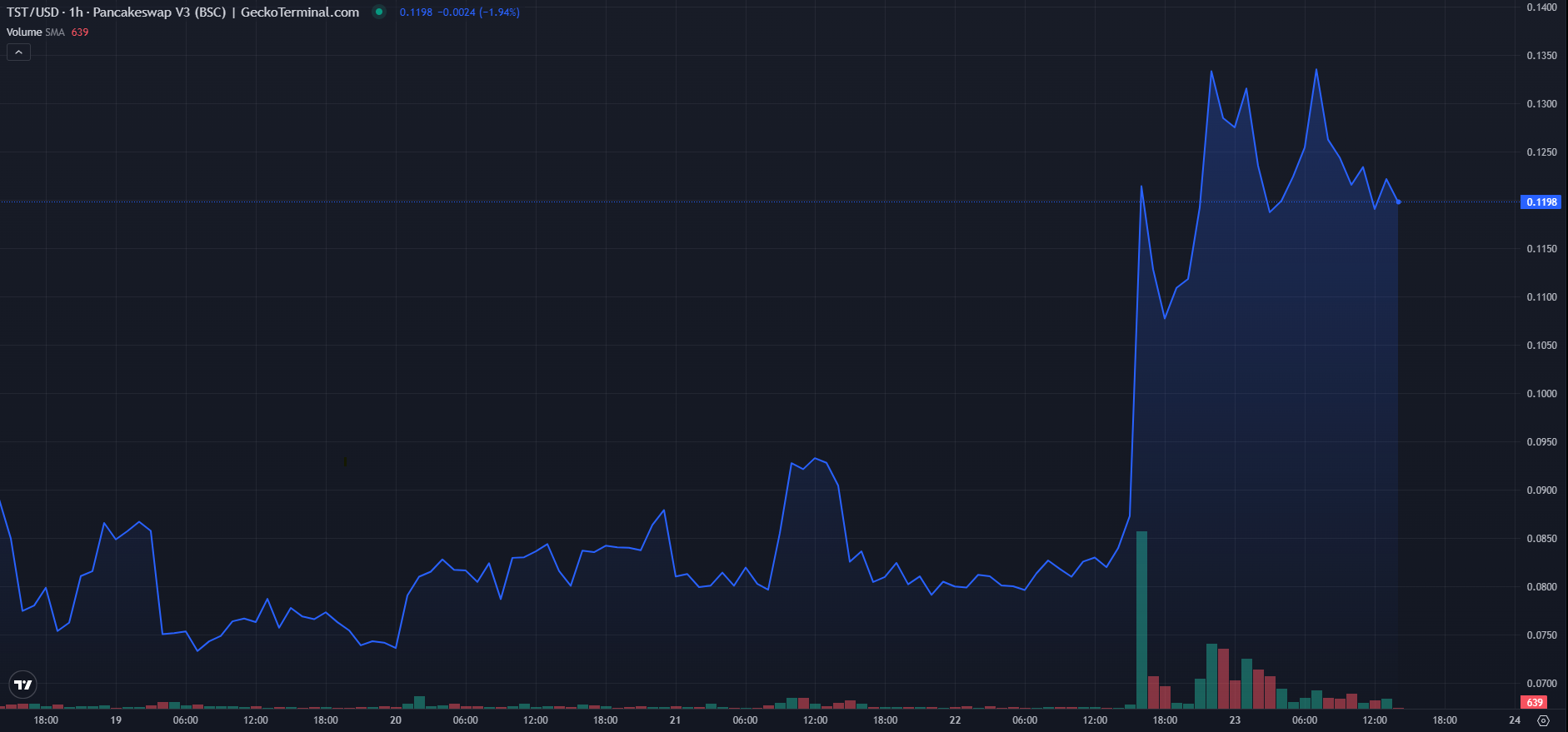 عملة الميم TST المبنية على سلسلة بينانس الذكية (BSC) قفزت بنسبة تقارب 50% في الـ24 ساعة الماضية، لتصل إلى أعلى مستوى لها في أسبوع.