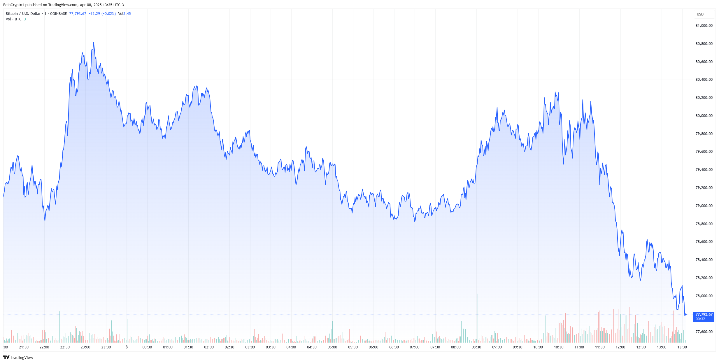 سعر بيتكوين تذبذب بشكل كبير بسبب التعريفات حيث تزايدت التكهنات بشأن البيع. ومع ذلك، السوق بأكمله في حالة فوضى الآن.