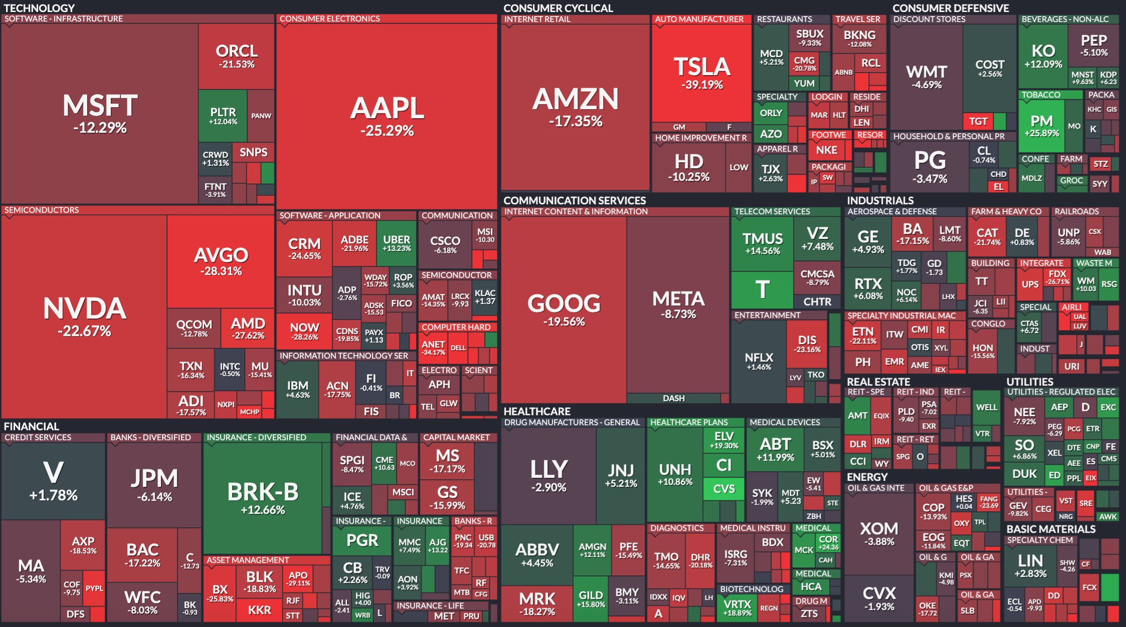 اليوم، ارتفع مؤشر داو جونز الصناعي بمقدار ١٬٢٨٥ نقطة، أو ٣٬٤٪، بينما قفز كل من S&P 500 وNasdaq Composite بنسبة ٣٬٤٪ و٣٬٣٪، على التوالي. ومع ذلك، مئات الأسهم انخفضت بنسبة ٢٠٪ أو أكثر.