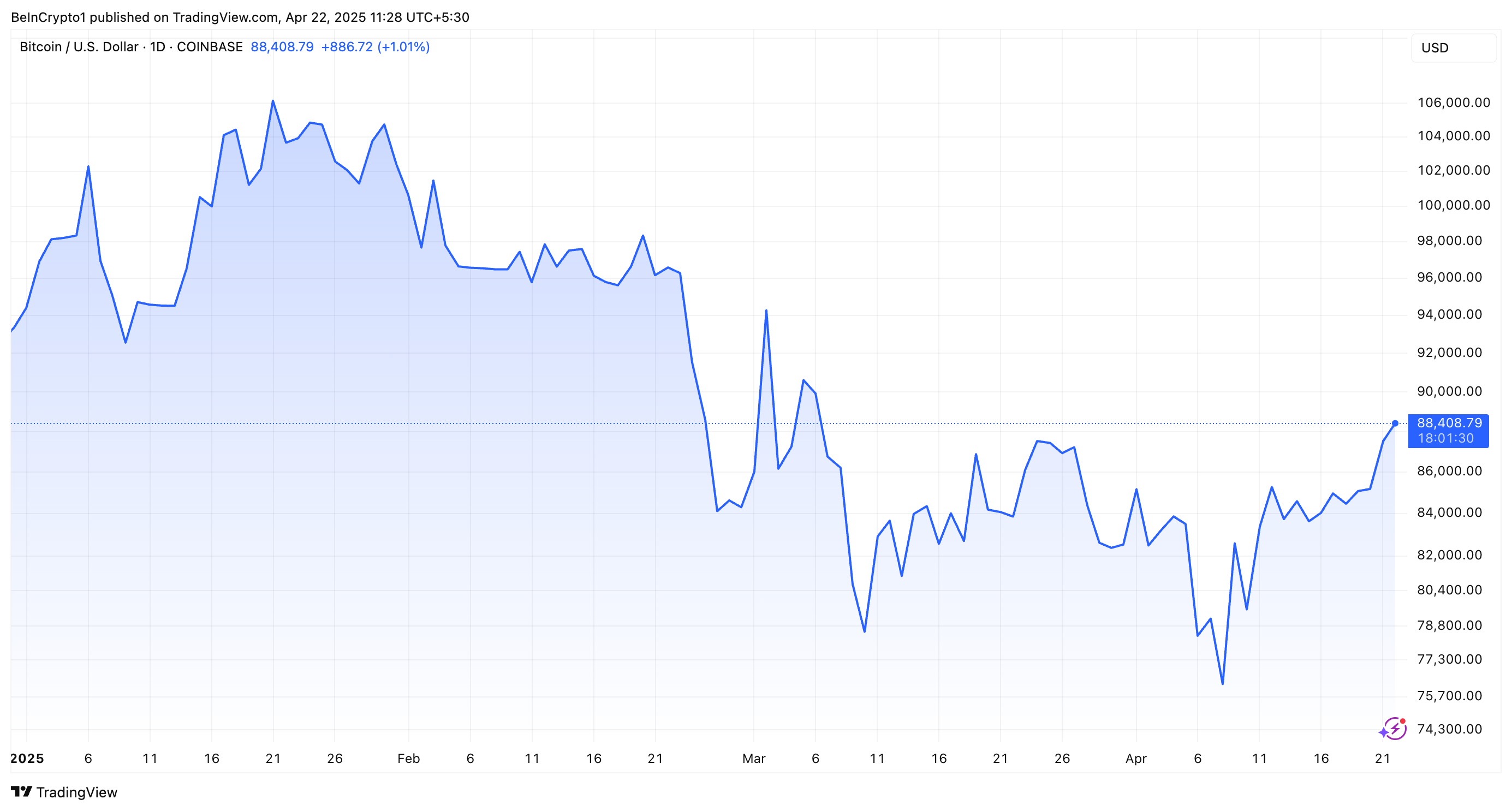 Sponsoredارتفع إلى ما فوق ٨٧٬٠٠٠ $ أمس، مسجلاً ارتفاعات لم تُشاهد منذ يوم التحرير. بالإضافة إلى ذلك، استمر الارتفاع.
