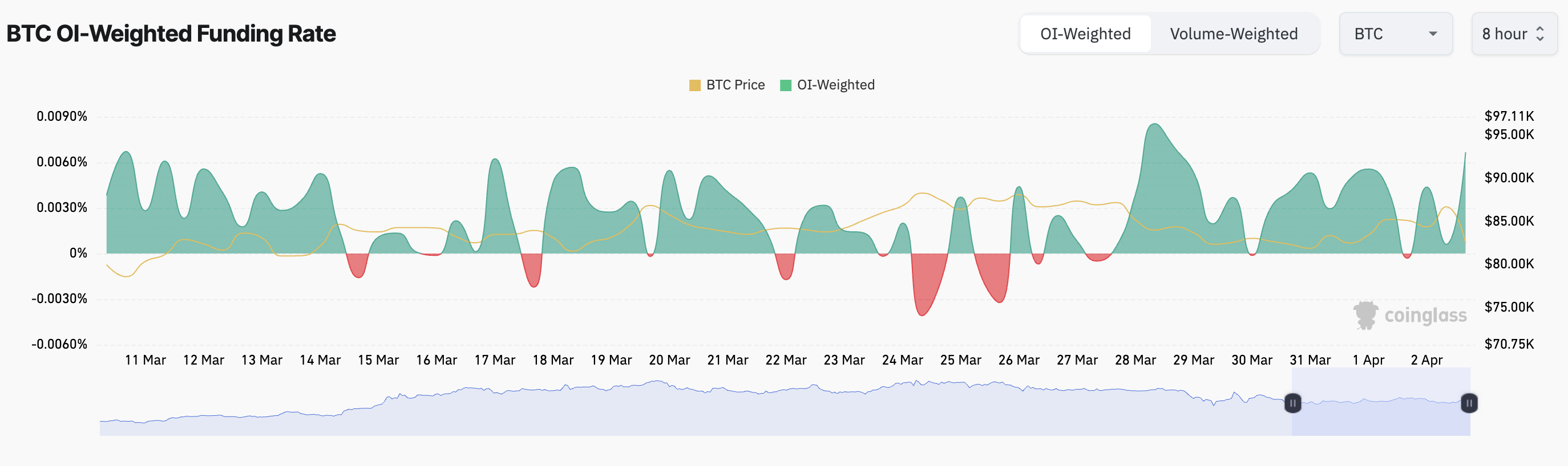 ومع ذلك، فإن معدل التمويل الإيجابي للعملة يوفر بعض الراحة. عند 0,0067% في وقت النشر، يعكس معدل تمويل بيتكوين طلبًا قويًا على المراكز الطويلة على حساب المراكز القصيرة، مما يبرز مرونة الحاملين على الرغم من تقلب سعر بيتكوين.