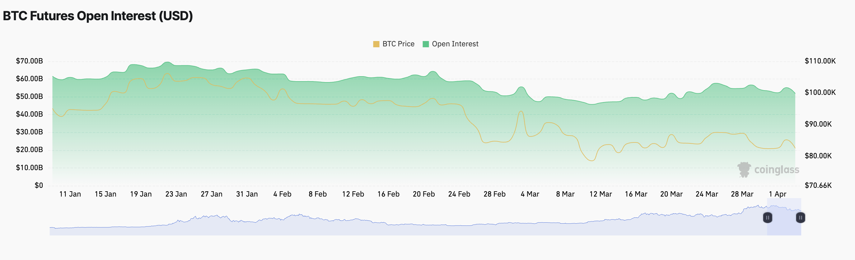 في الوقت نفسه، انخفض النشاط في سوق مشتقات بيتكوين، حيث انخفضت الفائدة المفتوحة لعقود البيتكوين الآجلة بنسبة ٧٪ خلال الـ ٢٤ ساعة الماضية. في وقت النشر، وفقًا لبيانات Coinglass، تبلغ هذه القيمة ٥١,٨٢ مليار دولار.