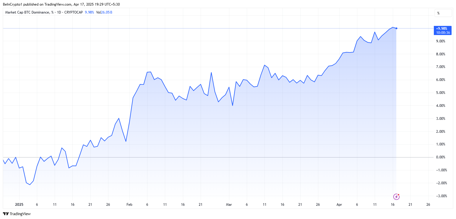 أضاف فورنييه أنه نظرًا لأن هيمنة بيتكوين تستمر في الارتفاع، فإن هذا يشير إلى أن العملات البديلة قد تستمر في الأداء الضعيف على المدى القصير.