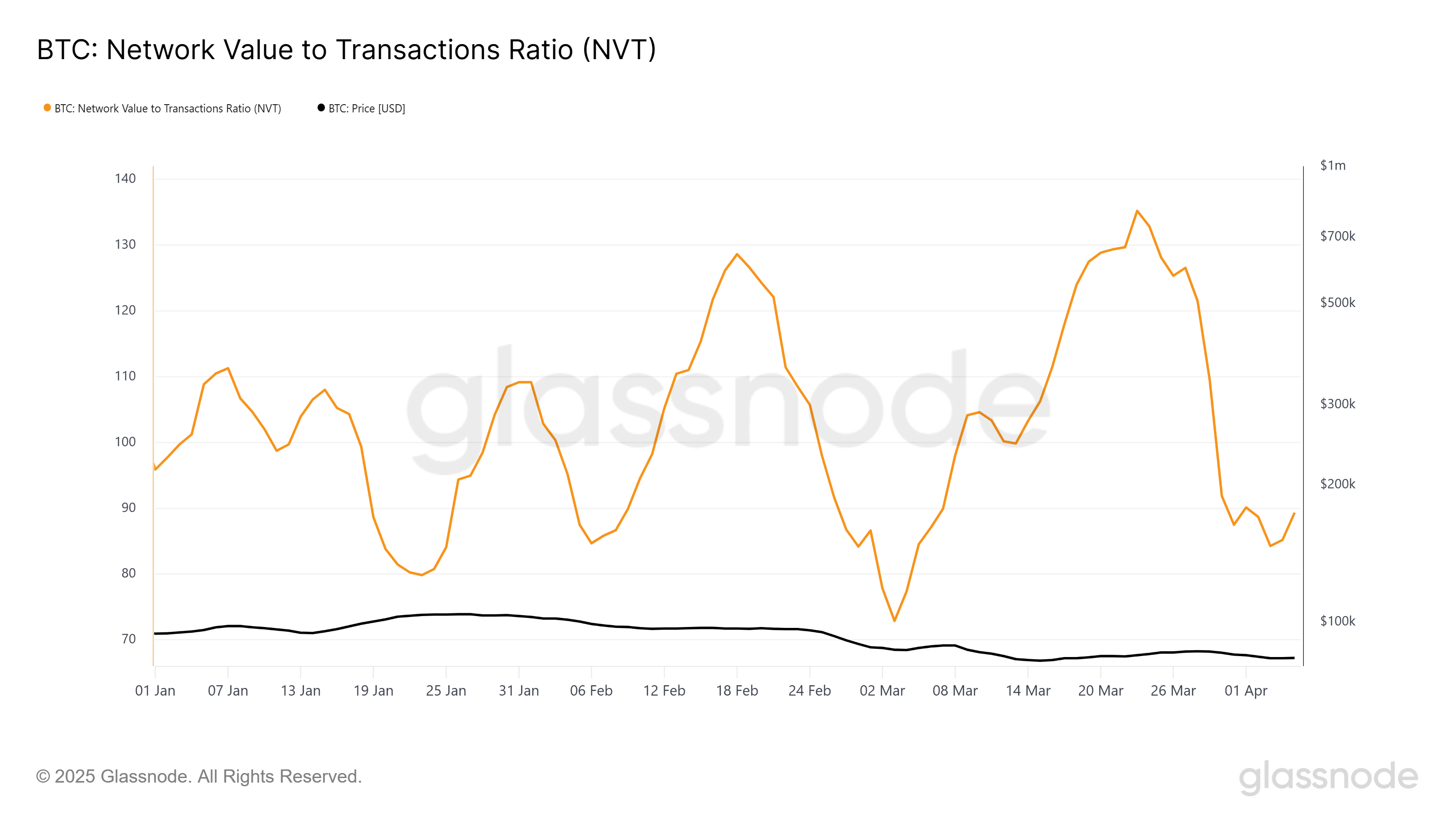 تقييم شبكة بيتكوين مقارنة بحجم المعاملات قد انخفض بشكل كبير في الأسبوعين الماضيين. يشير هذا التحول إلى أن نشاط الشبكة يتماشى بشكل أكبر مع الاستخدام الفعلي، مما يجعل بيتكوين تبدو مقيمة بشكل عادل. في الدورات السابقة، سبقت انخفاضات مماثلة تعافيات كبيرة، مما يبرز الإمكانية الصعودية.