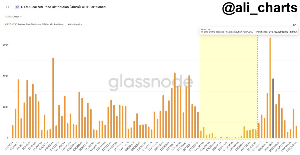 خلال الأسبوع الماضي، كان سعر بيتكوين في "منطقة دعم رئيسية" بين 97,000$ و93,800$. إذا انخفضت قيمة الأصل تحت هذا النطاق، قد نشهد انخفاضًا حادًا إلى 70,000$، حيث يوجد دعم ضئيل تحته. للأسف، سعر BTC حاليًا يعلق في الطرف السفلي من هذا النطاق.