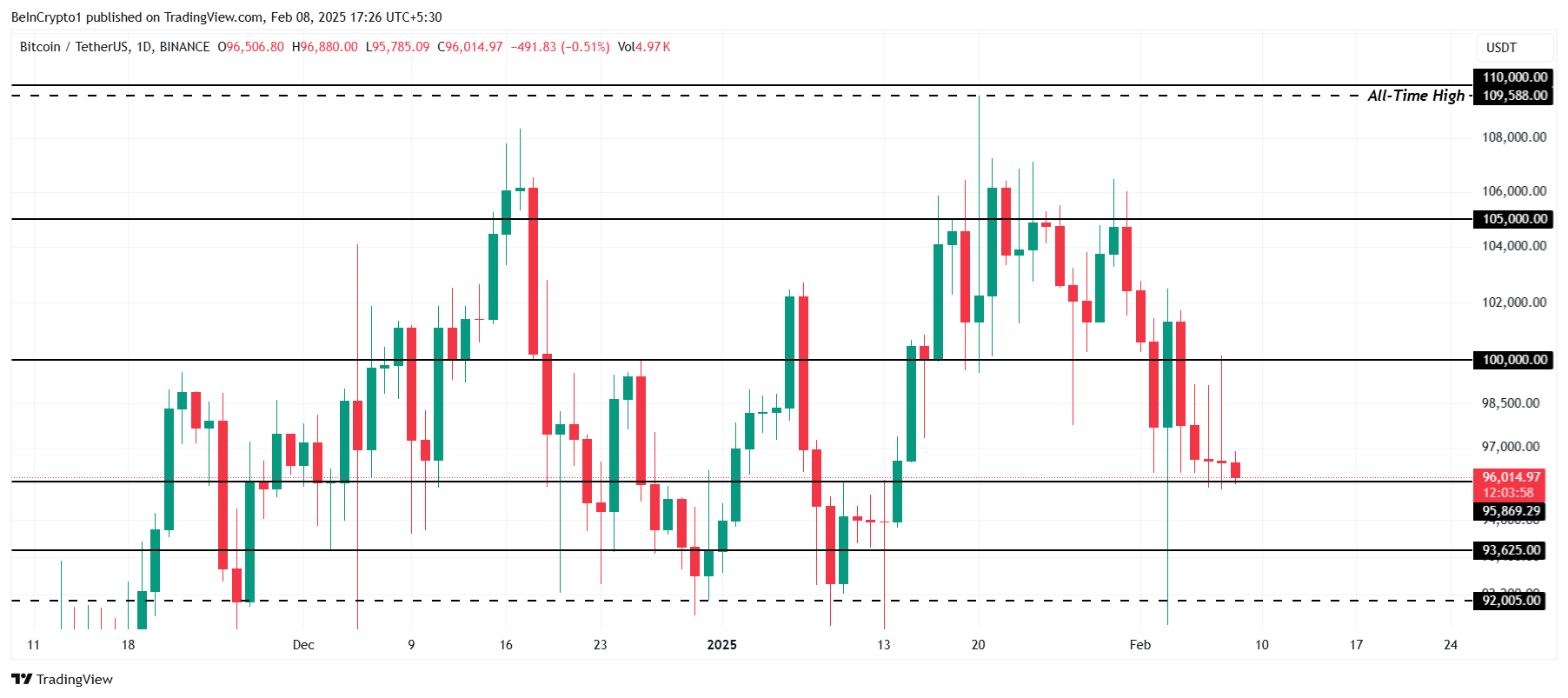 من ناحية أخرى، يمكن أن يمكن الارتداد من $95,869 بيتكوين من استعادة مستوى $100,000. اختراق هذا الحاجز النفسي بنجاح سيبطل النظرة الهبوطية، مما قد يمهد الطريق لاتجاه صعودي متجدد.