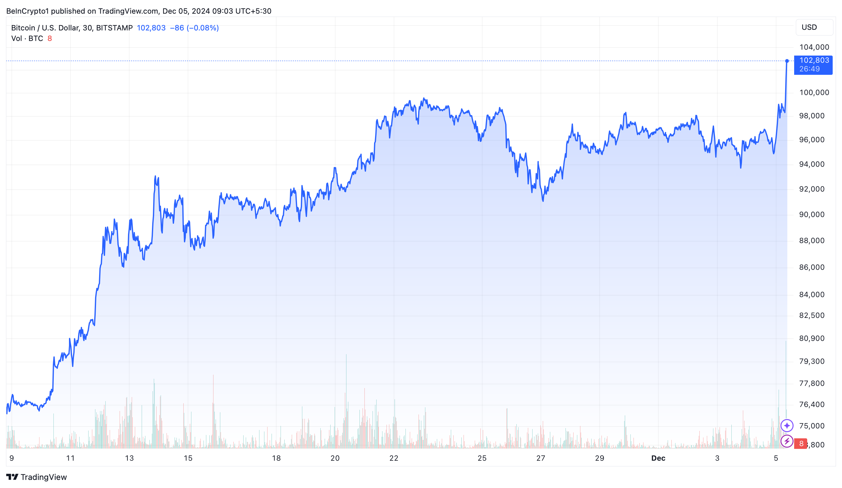 BTC تصل أخيرًا إلى 100,000 دولار