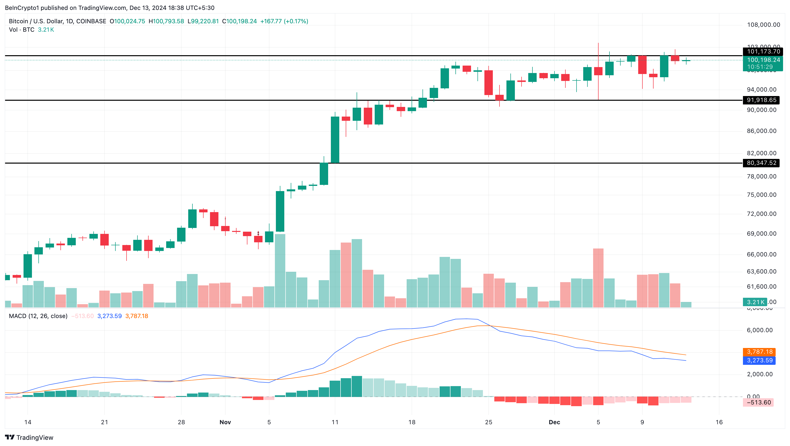 ومع ذلك، إذا زاد ضغط الشراء، فقد يرتفع سعر بيتكوين فوق مقاومة 101,173$. في هذا السيناريو، يمكن أن تتجه العملة المشفرة نحو 108,000$.