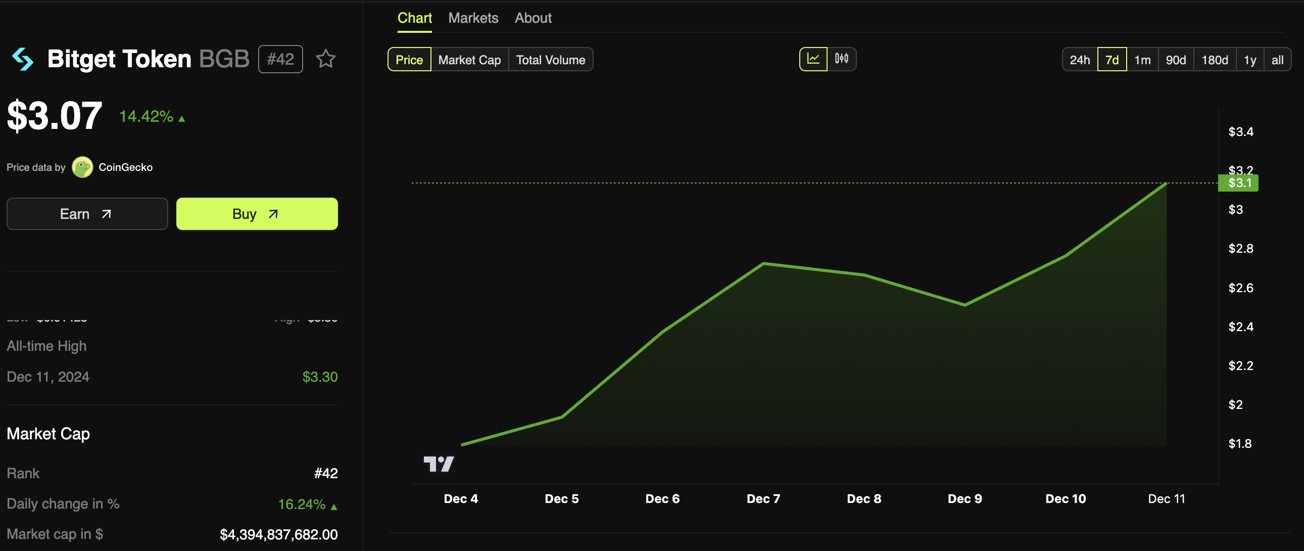 في أي حال، وصل رمز BGB الخاص بـ Bitget إلى أعلى مستوى له على الإطلاق اليوم، وهناك عدة علامات على استمرار الزخم الإيجابي. كانت البورصة تولد دعاية جيدة لنفسها، ولا توجد أي تحذيرات واضحة من احتمال حدوث تراجع في المستقبل القريب.