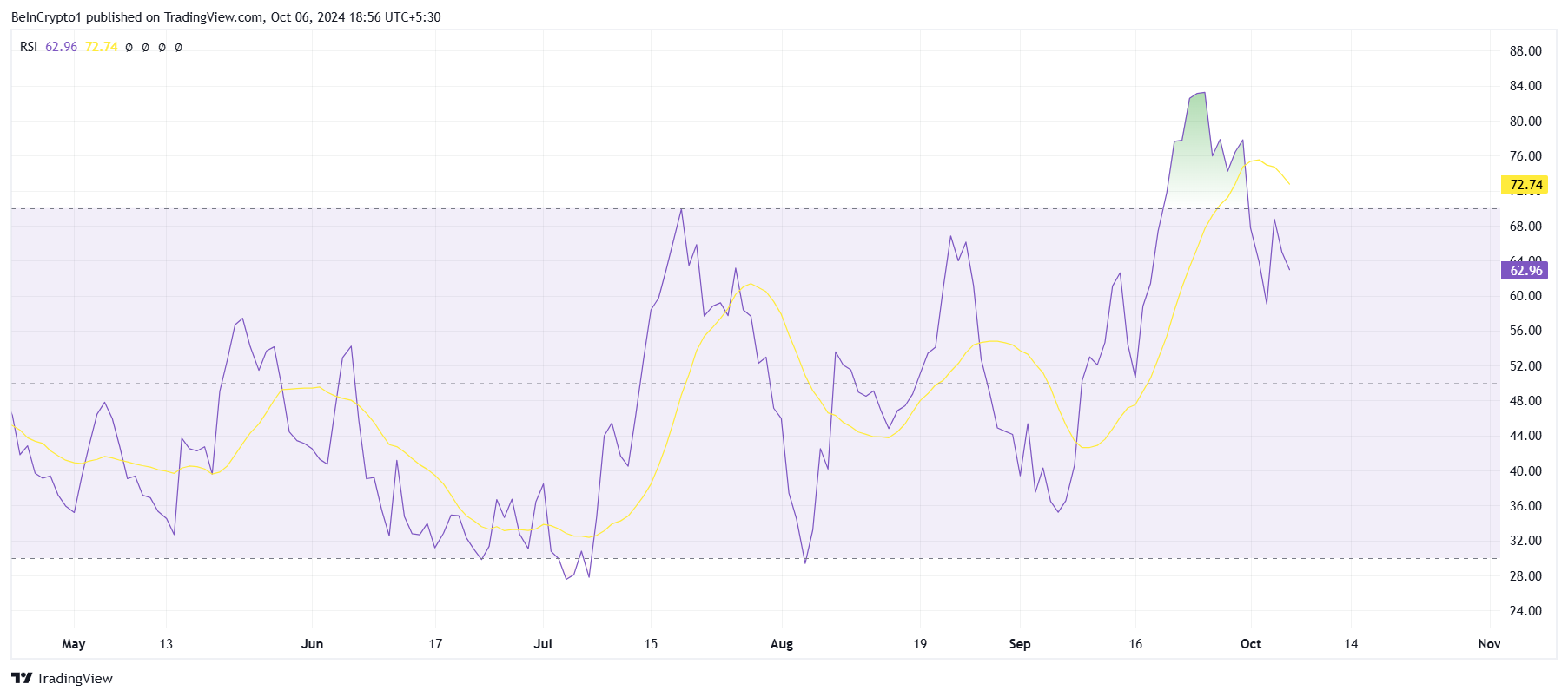 من منظور كلي، تشير المؤشرات الفنية لبيتنسور إلى أن الارتفاع قد يستمر. مؤشر القوة النسبية (RSI)، المستخدم لقياس قوة اتجاهات الأسعار، يحافظ حالياً على وجوده في المنطقة الصعودية. بينما دخل RSI سابقاً إلى منطقة التشبع الشرائي، فوق 70,0 في سبتمبر، فقد تراجع قليلاً منذ ذلك الحين مع بقائه فوق المستويات المحايدة.