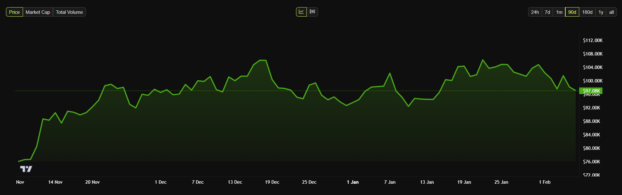 يمثل هذا المنتج المتداول في البورصة الأوروبي لبلاك روك إشارة قوية على ثقة التنفيذيين في بيتكوين. كان سعر الأصل في حالة تقلب خلال الأشهر القليلة الماضية، محتفظًا عمومًا بالمكاسب من انتخاب ترامب في نوفمبر.