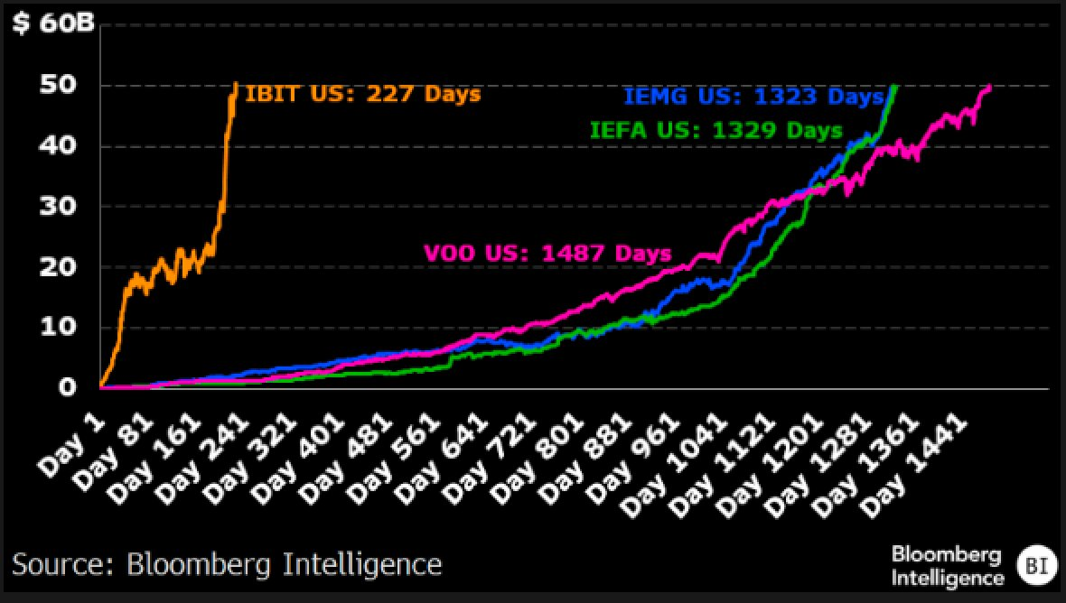 مع IBIT، لم تنمو BlackRock بسرعة أكبر من منتجات البيتكوين المنافسة فقط؛ بل ارتفعت بسرعة أكبر من أي صناديق استثمار متداولة في الأسواق العالمية.