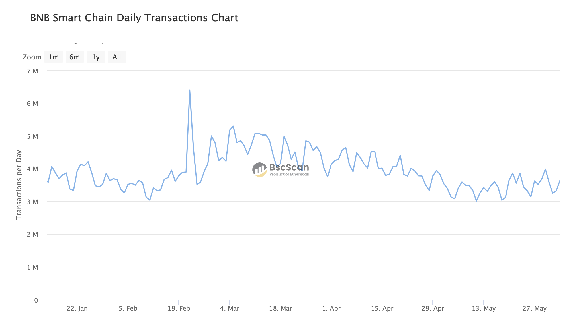 Binance Smart Chain Daily Transactions. Source: BscScan