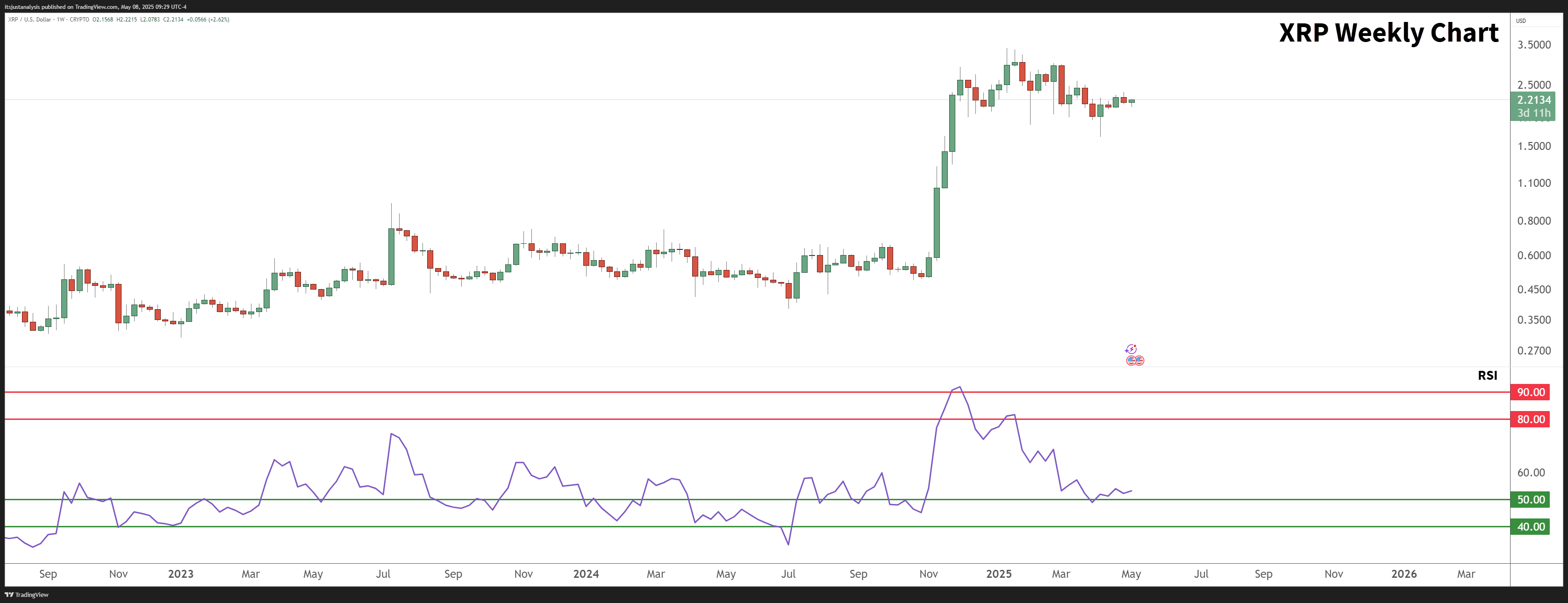 بالنظر إلى الرسم البياني الأسبوعي لـ XRP الآن، فإن تفسيري هو صعودي لأن XRP يحترم مستوى OS عند 50 كدعم.