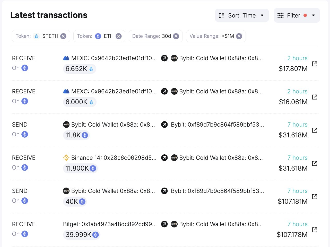 شهدت بايبت انخفاضًا حادًا في احتياطيات أصولها، حيث خسرت أكثر من ٥ مليارات دولار خلال ٢٤ ساعة بعد تعرضها لاختراق بقيمة ١,٥ مليار دولار.