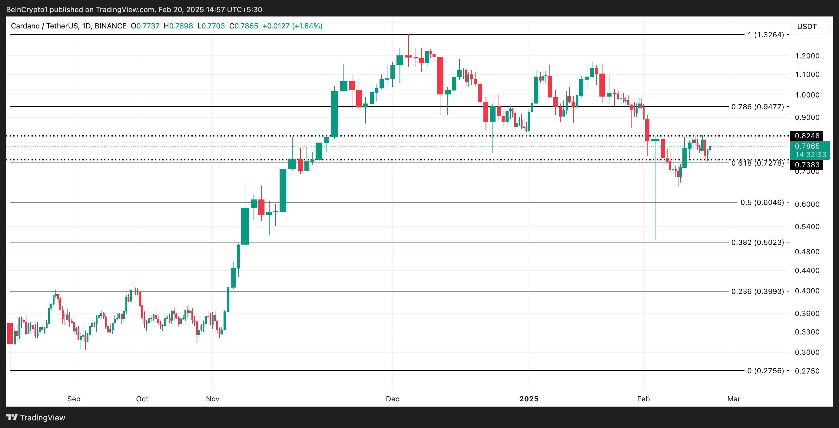 منذ بداية فبراير، سعر ADA يتأرجح ضمن نطاق ضيق. واجه مقاومة عند $0,82 ووجد دعمًا عند $0,73. ومع ذلك، قد يتغير هذا الاتجاه.