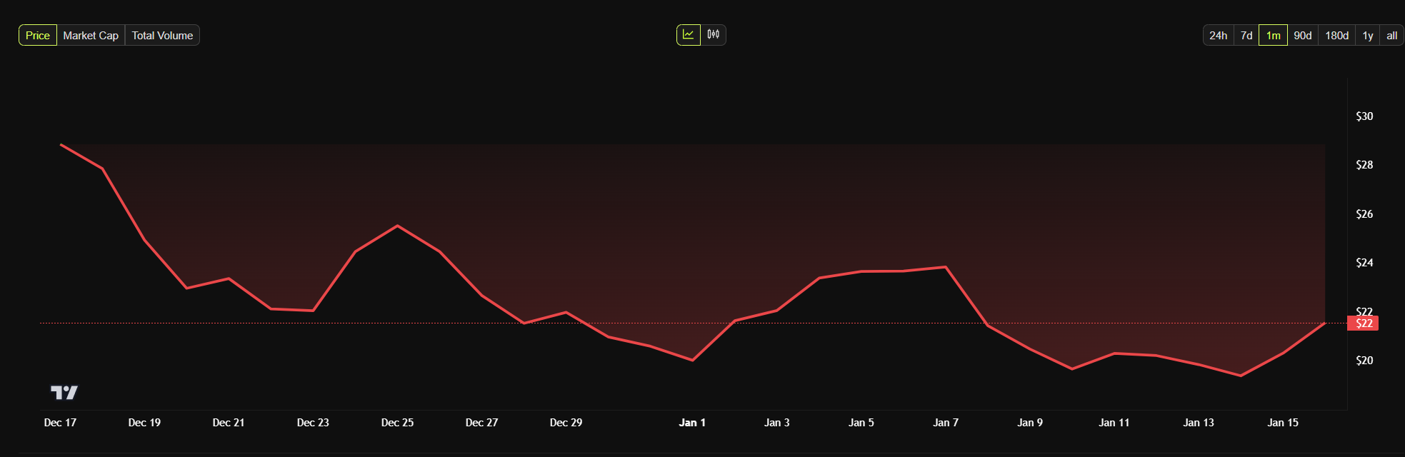 ومع ذلك، لا يزال من غير الواضح ما إذا كانت هذه الترقية لـ CCIP ستؤدي إلى تحسين سعر رمز LINK الخاص بـ Chainlink. توقف قيمته طوال ديسمبر، ولم توقف الشراكات الرئيسية الجديدة لـ Chainlink الانخفاض.