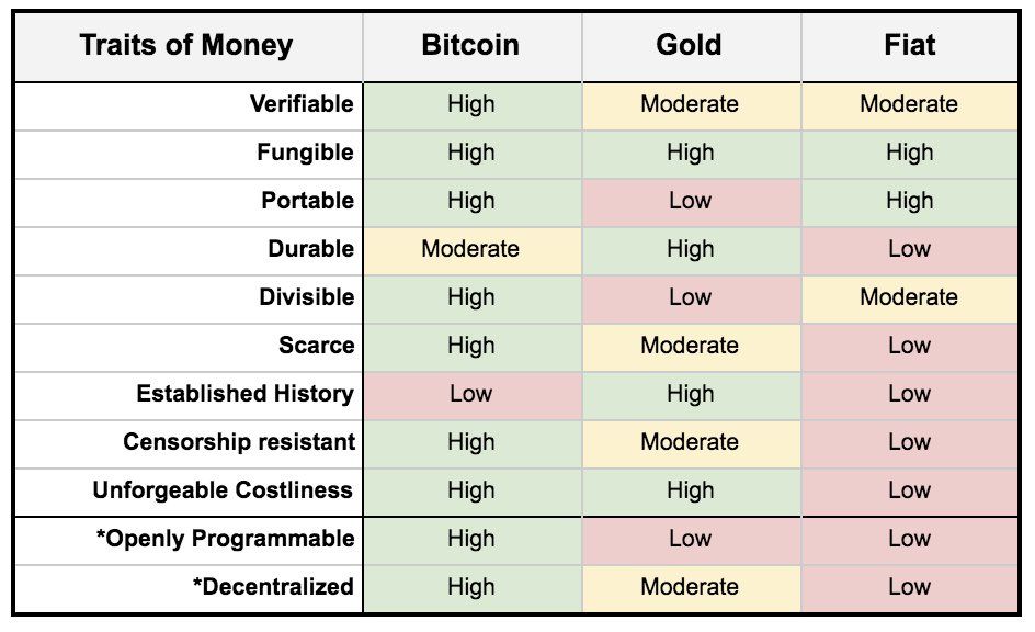 وصف براين أرمسترونج، الرئيس التنفيذي لشركة كوينبيس، بيتكوين بأنها شكل أفضل من المال مقارنة بالذهب، مشيرًا إلى ندرتها، وقابليتها للنقل، وقابليتها للتقسيم، وفائدتها، وأدائها.