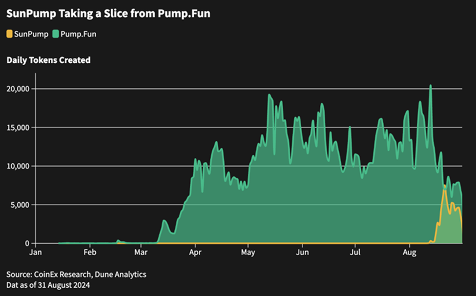 تبرز SunPump كخيار شائع بين متداولي عملات الميم على منصة Tron، وقد سهلت إنشاء أكثر من 63,000 عملة ميمية وحققت أكثر من 25 مليون TRX من الإيرادات، مما يشكل تحديًا لهيمنة Pump.Fun ويعرض الطبيعة الديناميكية لأسواق عملات الميم.