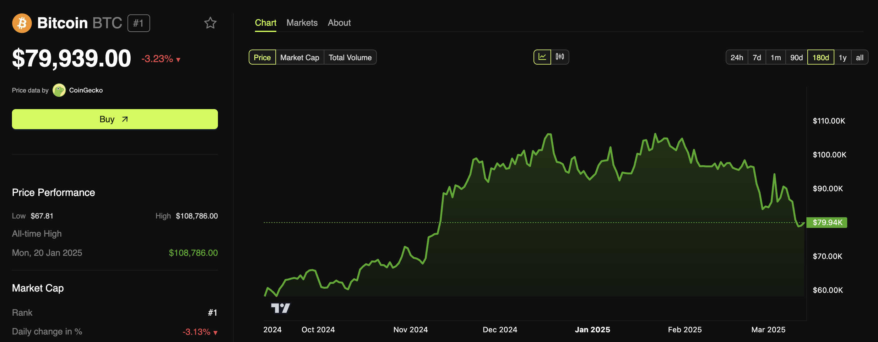 ومن الجدير بالذكر أن بيتكوين، الأصول الرقمية الرائدة، انخفضت إلى 76,600 دولار اليوم. هذا يمثل أدنى مستوى لها في أربعة أشهر. وقد تعافت قليلاً إلى 79,939 دولار في وقت النشر، لا تزال منخفضة بنسبة 3,2% خلال اليوم الماضي.