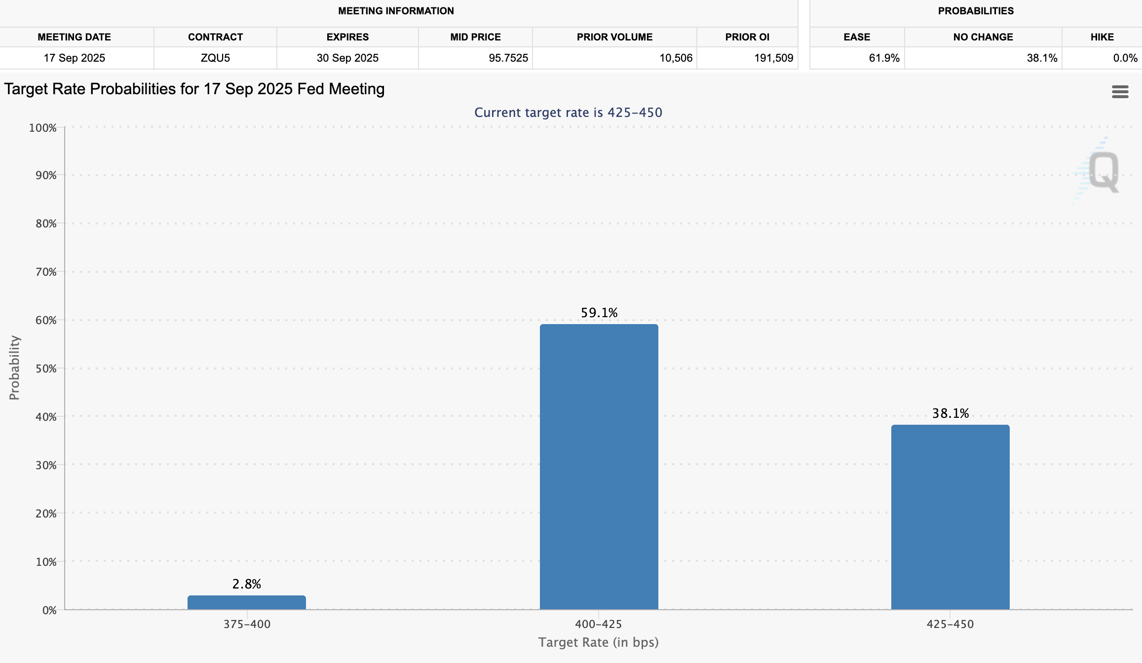 لقد أثرت رسائل التعريفة الآن على الاحتمالات لشهر سبتمبر. وفقًا لأداة CME FedWatch، انخفضت فرص خفض المعدل بحلول سبتمبر إلى 61,9%، مما يمثل انخفاضًا كبيرًا من 90% قبل أسبوعين فقط.