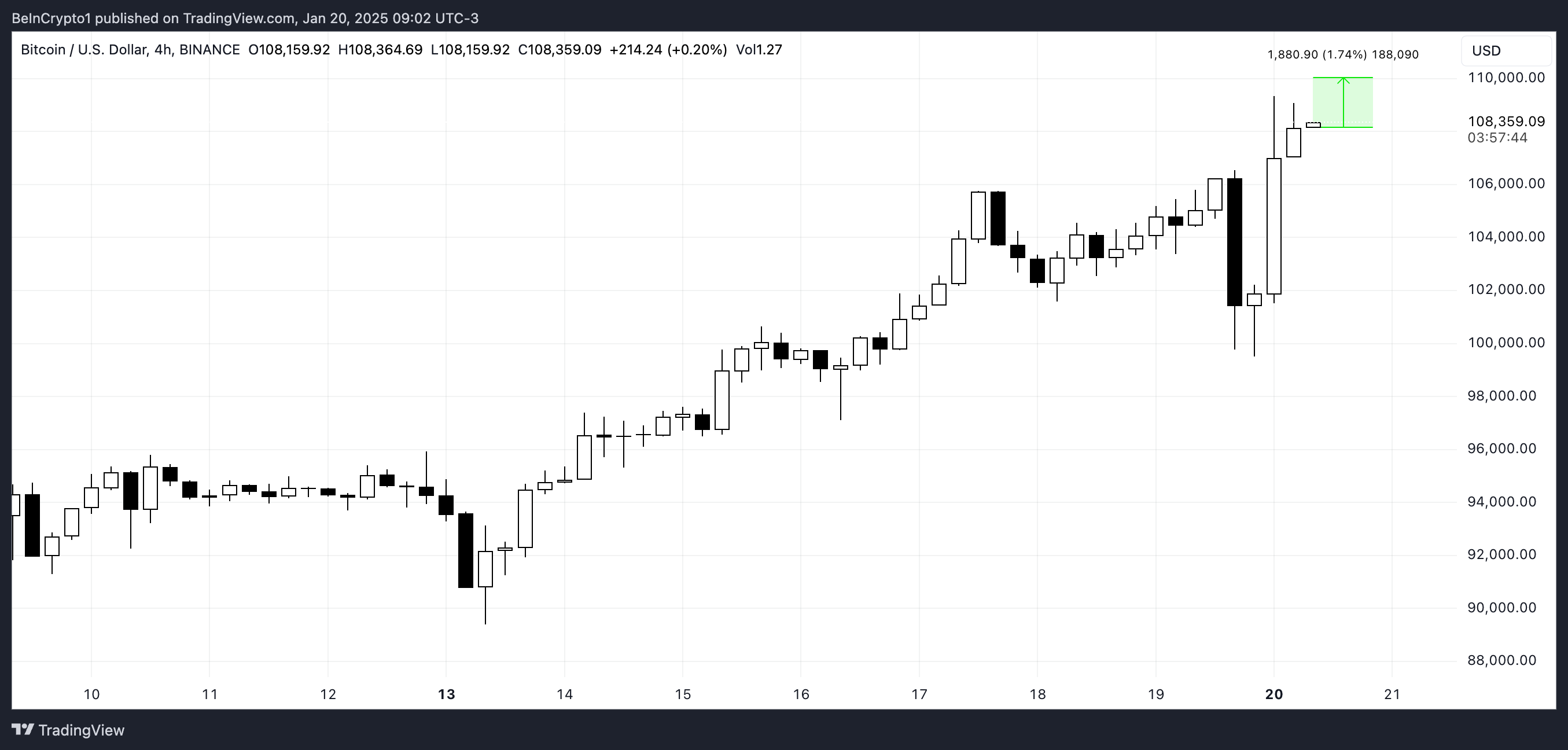 هذا الأسبوع، يمكن أن تصل BTC إلى 110,000$ أو حتى 115,000$، اعتمادًا على كيفية تعامل ترامب مع التوقعات المتعلقة بالعملات الرقمية في أيامه الأولى في المنصب. إذا كانت الإشارات المبكرة إيجابية، فإن التفاؤل في السوق يشير إلى إمكانية قوية لمزيد من النمو.