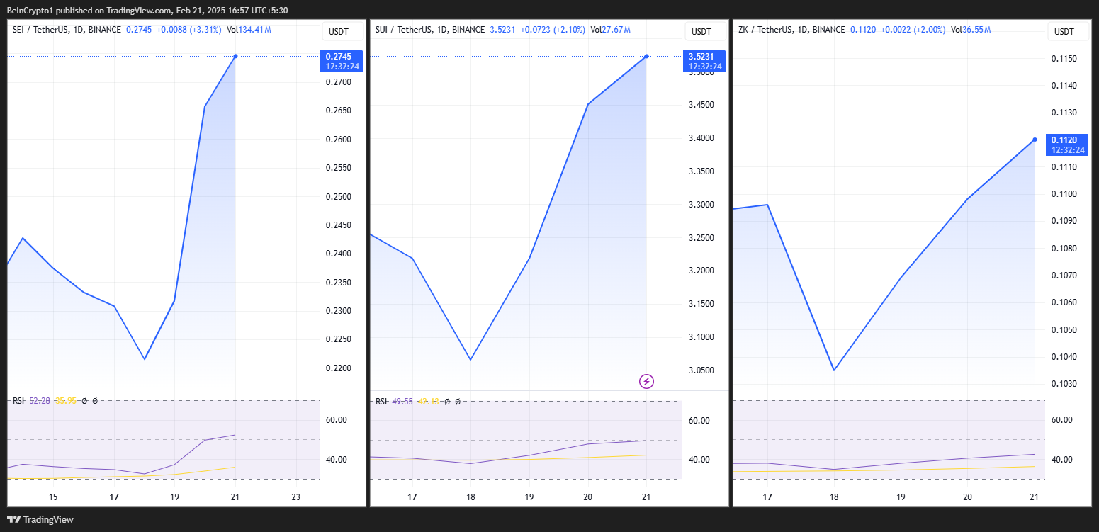 على الرغم من عدم اليقين، فقد تفوقت بعض العملات البديلة. مشاريع مثل سي (SEI)، سوي (SUI)، زكسينك (ZK)، وStory (IP) قد جذبت الانتباه، مما يشير ربما إلى ظهور روايات جديدة في المجال.