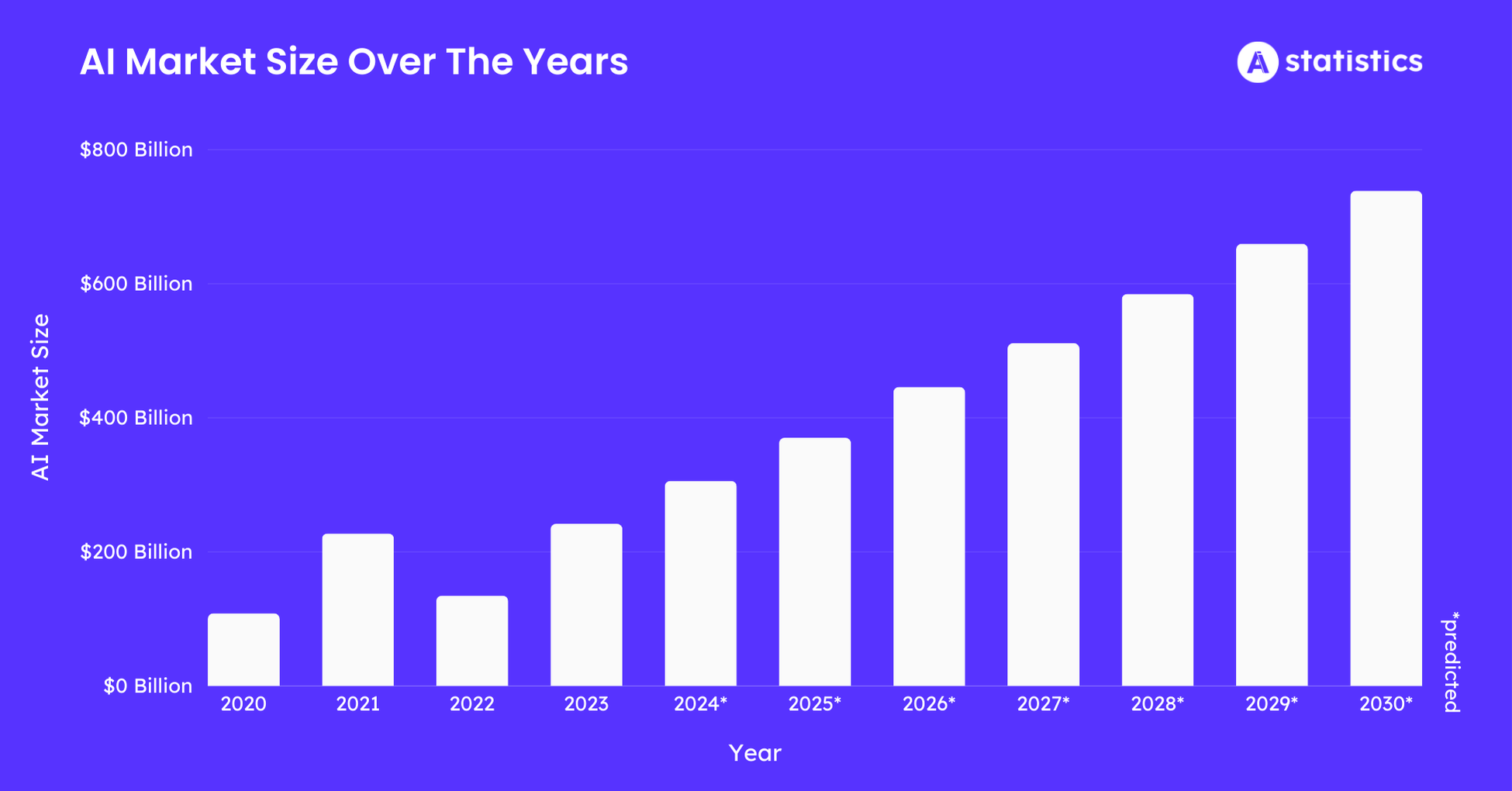 تشير توقعات فوربس إلى أن السوق العالمي للذكاء الاصطناعي سيصل إلى 1,339 مليار دولار بحلول 2030، وهو صعود مذهل من 214 مليار دولار هذا العام. يبرز هذا النمو الفرصة للأنظمة اللامركزية للتوسع جنبًا إلى جنب مع الذكاء الاصطناعي التقليدي.