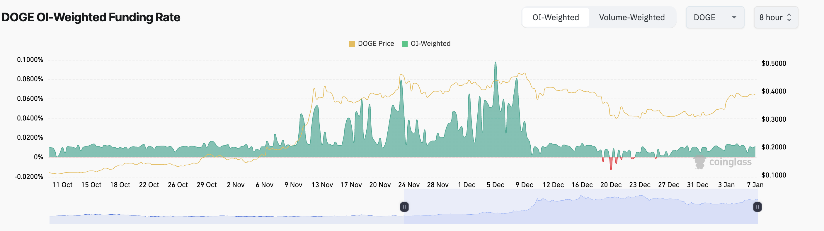 بالإضافة إلى ذلك، يدعم معدل التمويل الإيجابي لـ DOGE، الذي يبلغ 0,0011% في وقت النشر، هذا التوقع الصعودي. هذه هي الرسوم الدورية المدفوعة بين المتداولين في عقود الفيوتشرز الدائمة للحفاظ على سعر العقد متماشيًا مع سعر الأصل الفوري.