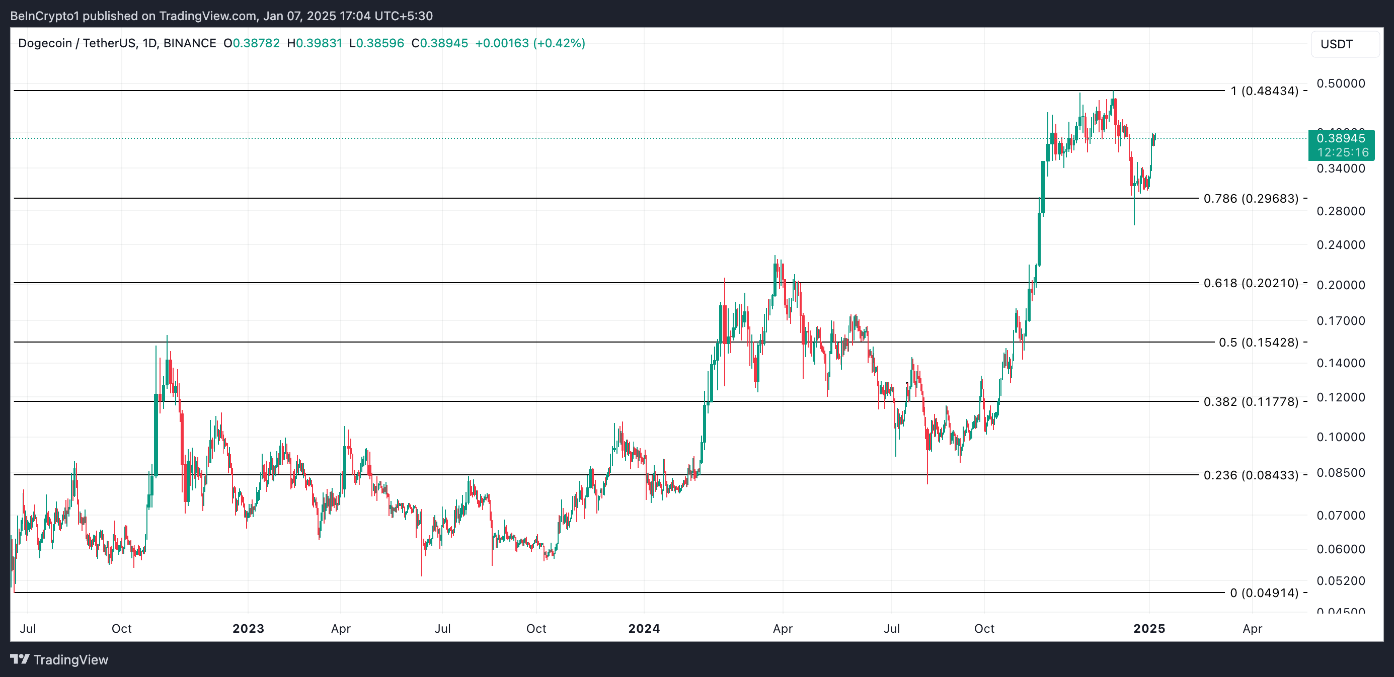إذا حافظ حاملو DOGE على المدى القصير على استراتيجيتهم في الاحتفاظ، يمكن أن يمتد سعرها في الاتجاه الصعودي ويصل إلى أعلى مستوى له في أربع سنوات عند $0,48.