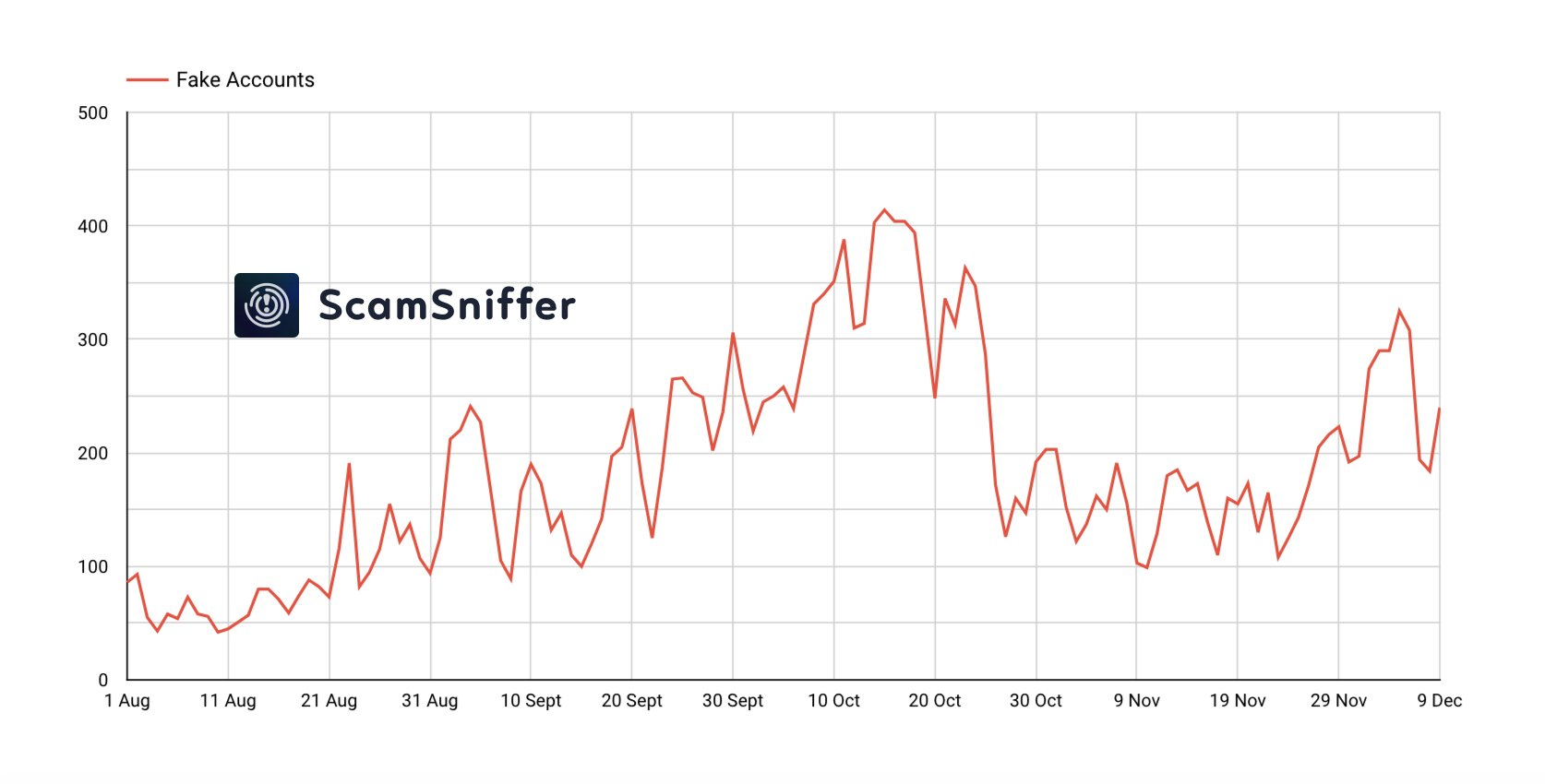 علاوة على ذلك، أشارت شركة الأمن البلوكشين Scam Sniffer إلى أن الحسابات الزائفة المتعلقة بالعملات الرقمية على X قد ارتفعت إلى أكثر من 300 يوميًا، ارتفاعًا من 160 في نوفمبر. لاحظت الشركة أن هؤلاء المحتالين غالبًا ما ينتحلون شخصيات مؤثرين لجذب المستخدمين إلى مجموعات تليجرام احتيالية.