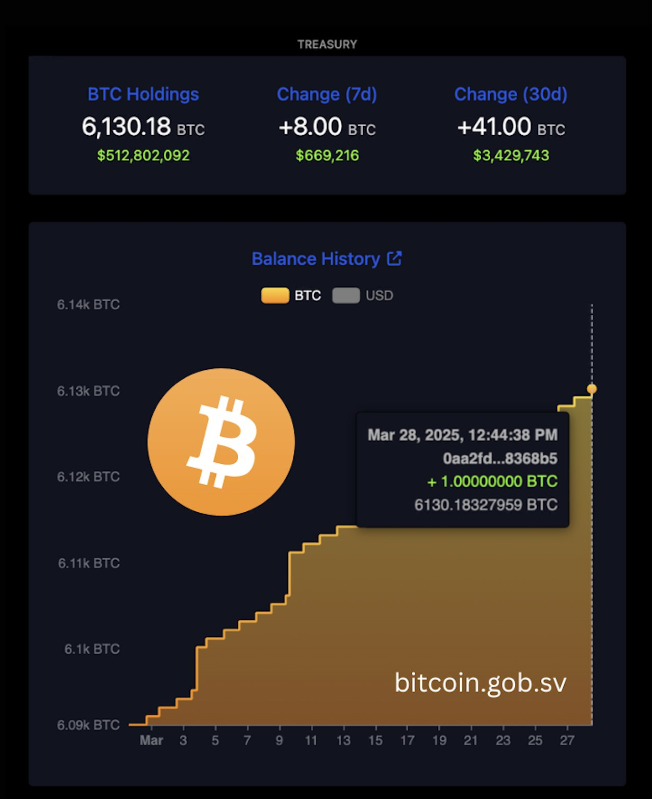 موقف بوكيلي من البيتكوين يعتبر استباقياً بشكل ملحوظ. في عام 2021، قاد إنشاء أول احتياطي وطني للبيتكوين في العالم، والذي نما منذ ذلك الحين إلى 6,130,18 btc—بقيمة تزيد عن 512 مليون دولار.