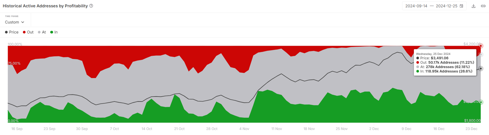 تشير هذه المستويات من العناوين الربحية إلى أن المزيد من المستثمرين قد يبيعون لتأمين الأرباح، مما يضيف إلى الضغط الحالي على البيع. إذا استمر هذا الاتجاه، قد تكافح إيثريوم للحفاظ على مستوياتها الحالية، مما يؤدي إلى انخفاض حاد في الأسعار.