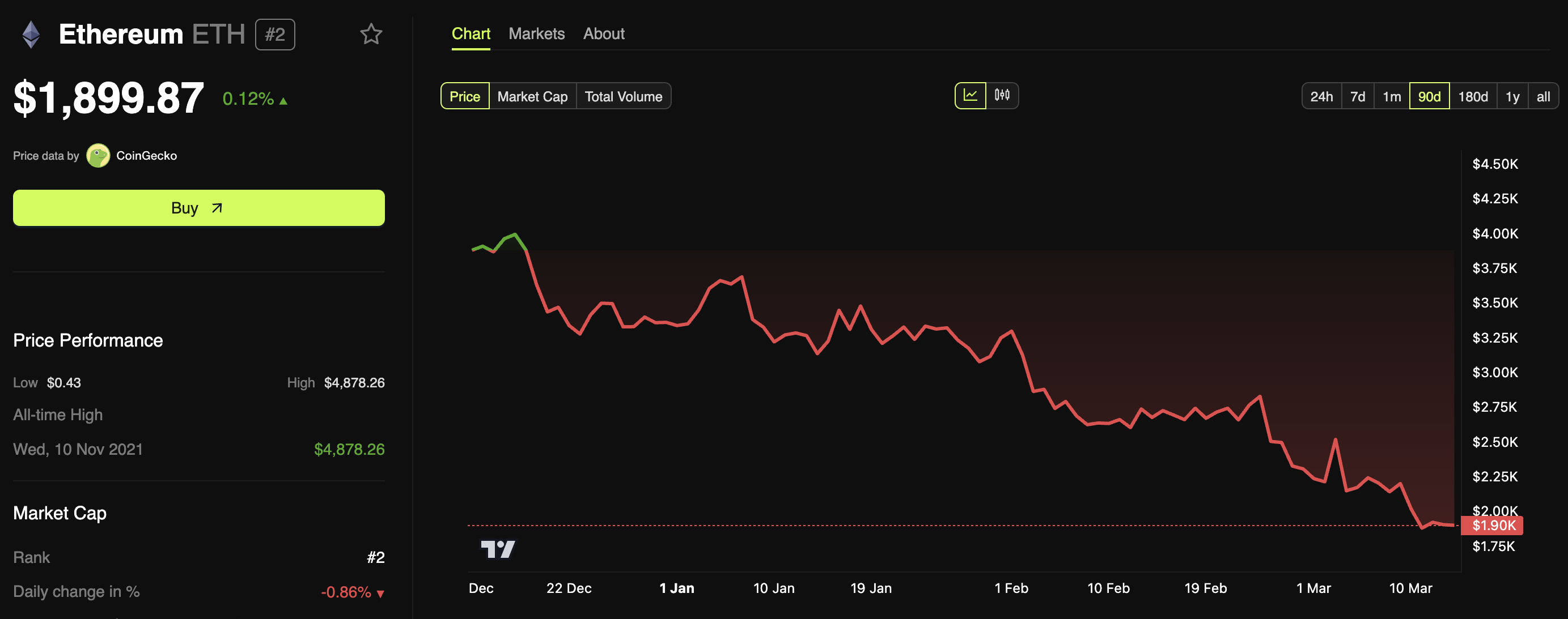 ثاني أكبر عملة مشفرة من حيث القيمة السوقية تواجه فترة صعبة تفاقمت بسبب التحديات الاقتصادية الكلية.