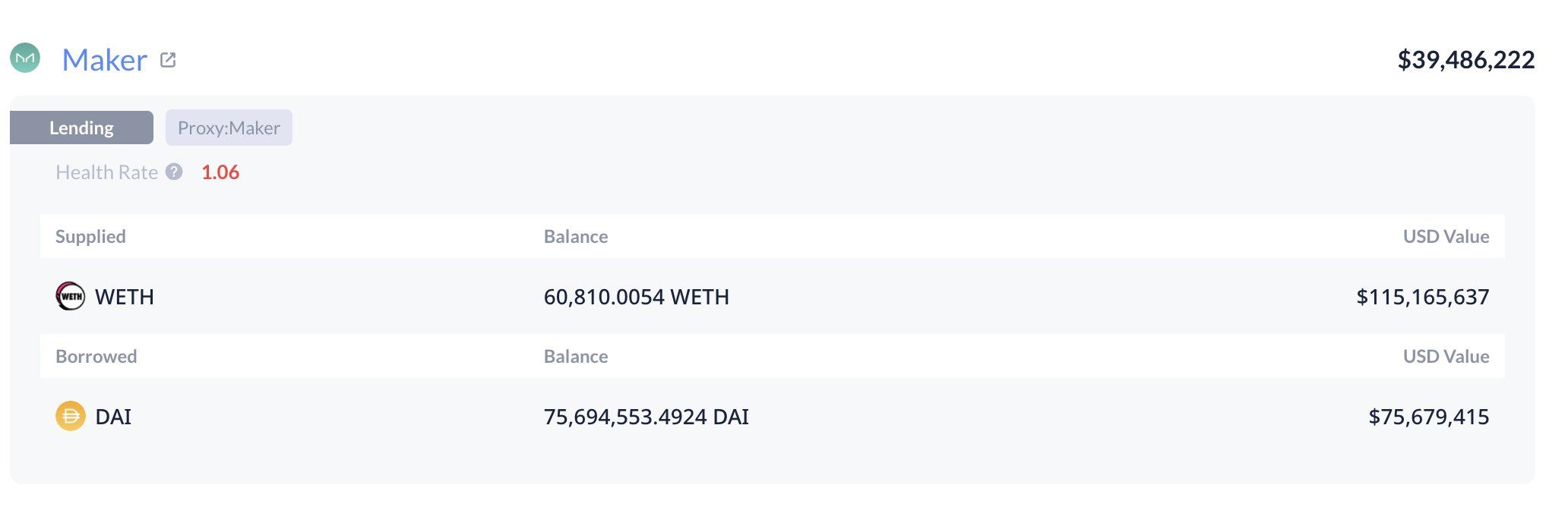 عندما تصبح تلك الوسادة منخفضة جدًا، يقوم البروتوكول تلقائيًا ببيع الضمان لتغطية الدين. في هذه الحالة، انخفضت نسبة صحة مراكز الحيتان إلى 1,07 فقط، وهي قريبة بشكل خطير من الحد الأدنى.