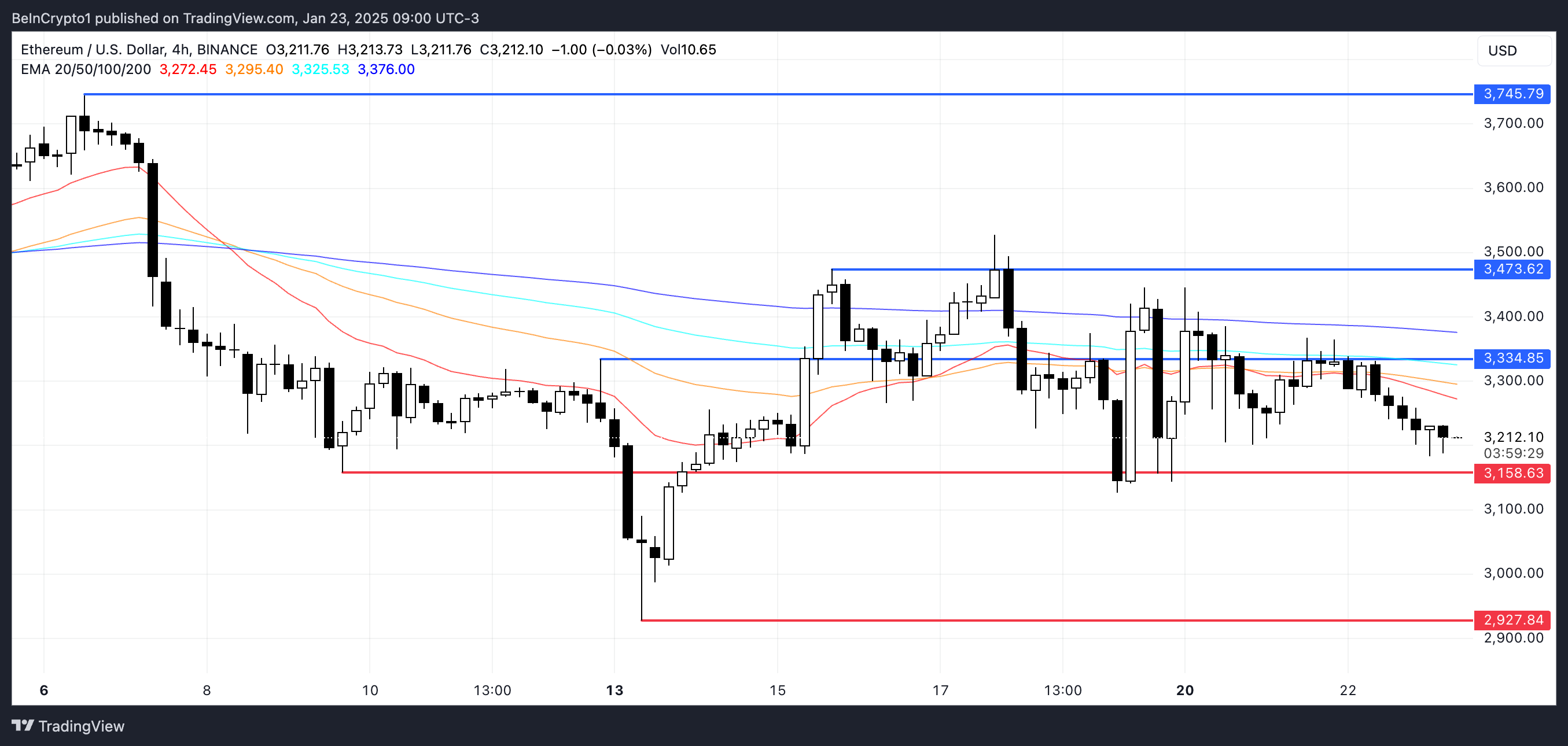 يتطلب سيناريو الانعكاس الصعودي أن يتغلب سعر إيثريوم أولاً على المقاومة عند $3,334. إذا نجح، تنتظر مستويات المقاومة الرئيسية عند $3,473 و$3,745.