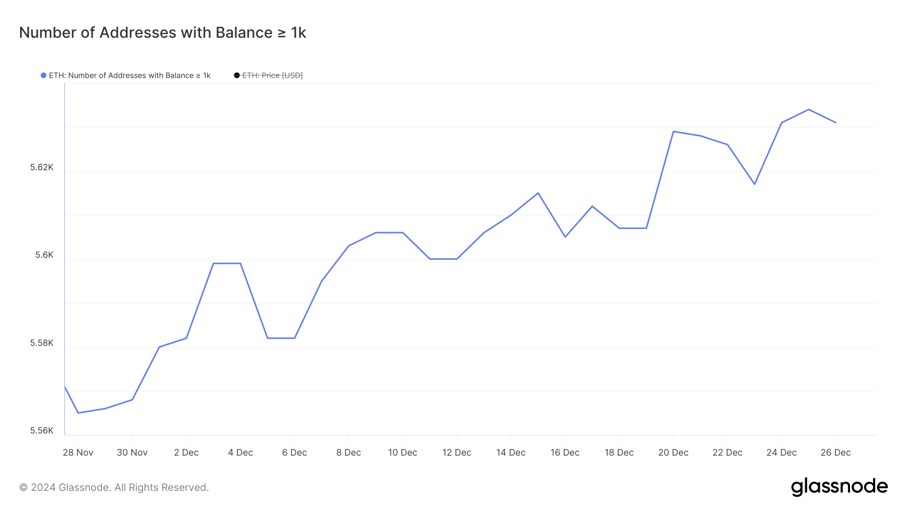 انخفض عدد حيتان الإيثيريوم قليلاً، لكنه لا يزال عند مستويات عالية
