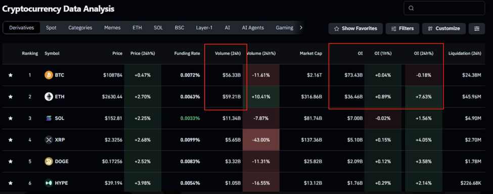 وفقًا لبيانات من Coinglass، تجاوز حجم التداول على مدار 24 ساعة لإيثريوم مؤخرًا حجم بيتكوين لأول مرة في الدورة الحالية.