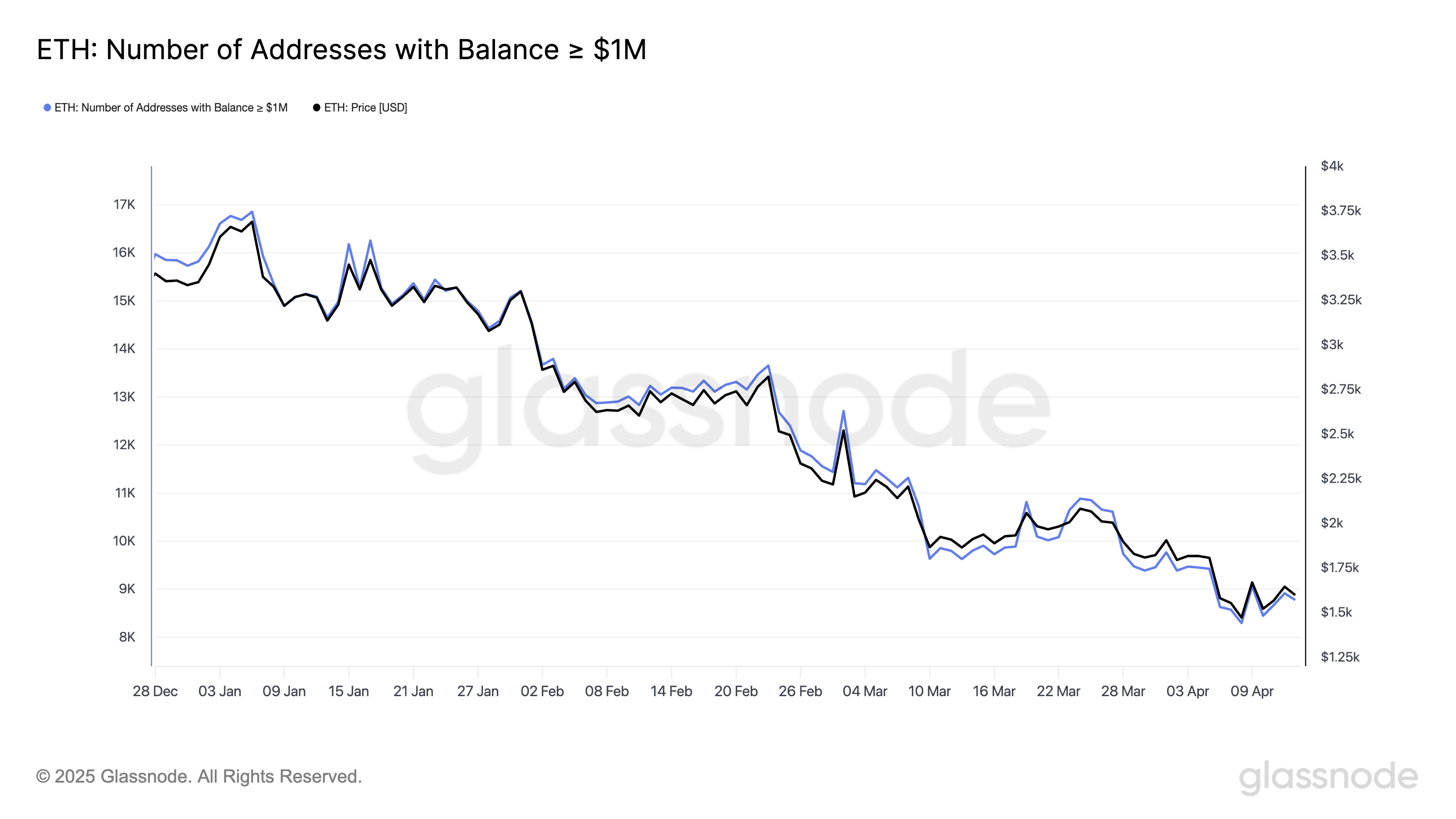 على الرغم من ذلك، فإن الأداء المخيب للآمال قد ردع المستثمرين. كشفت بيانات Glassnode أن عدد العناوين التي تحتوي على ما لا يقل عن ١ مليون دولار في ETH قد انخفض بشكل حاد منذ بداية العام (YTD). الأسبوع الماضي، انخفضت هذه العناوين إلى أدنى مستويات لم تُشاهد منذ يناير ٢٠٢٣، مما يعكس انخفاضًا ملحوظًا في ثقة المستثمرين ذوي الثروات العالية.