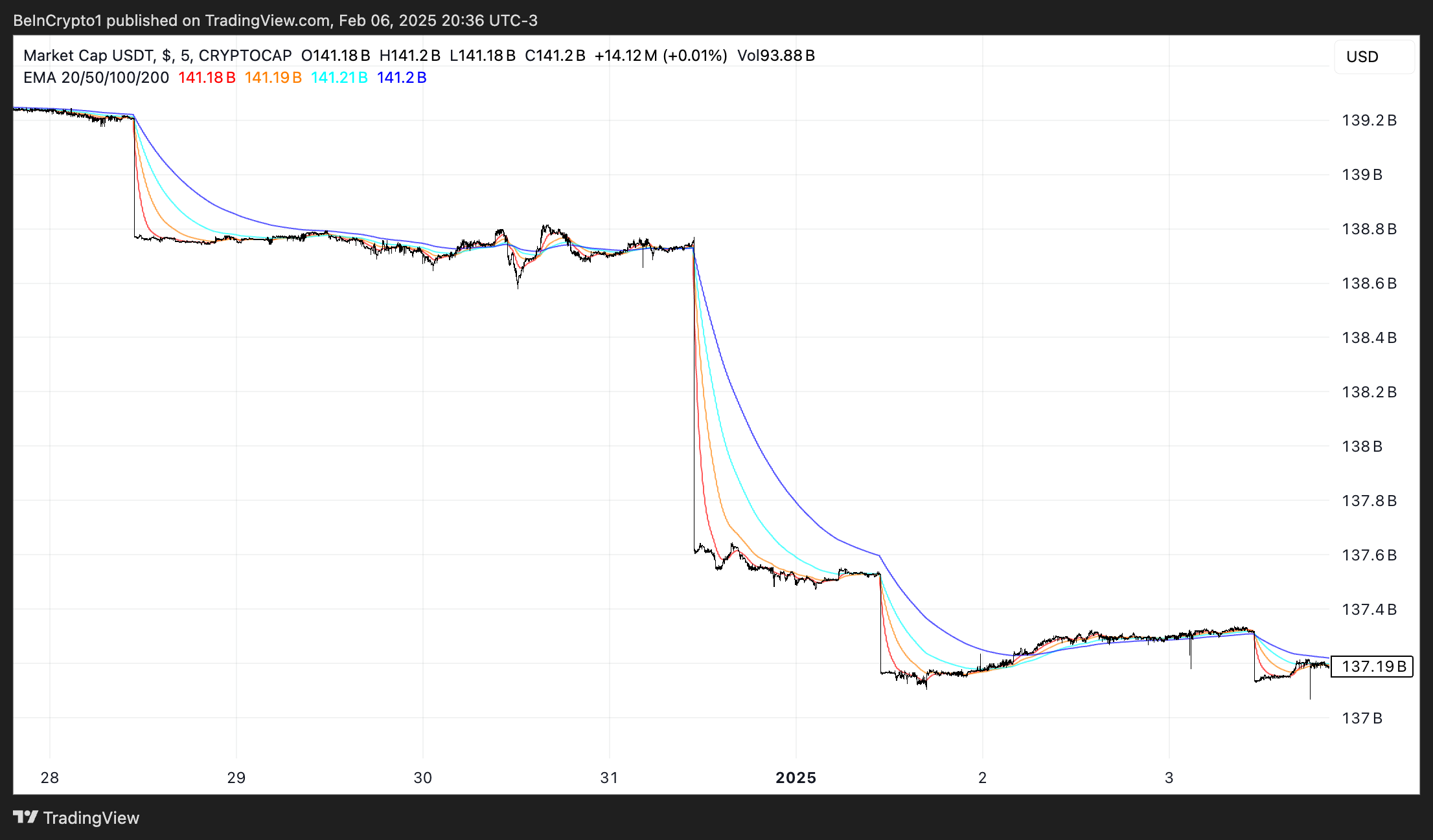 بمجرد أن دخل MiCA حيز التنفيذ، شهد USDT الخاص بـ Tether انخفاضًا بقيمة 2 مليار دولار في القيمة السوقية - وهو الأكبر منذ انهيار FTX. حتى قبل سن MiCA، بدأت البورصات المركزية مثل Coinbase في تقييد USDT، بينما تم توجيه بورصات الاتحاد الأوروبي مباشرة لإلغاء إدراج العملة المستقرة بشكل جماعي.